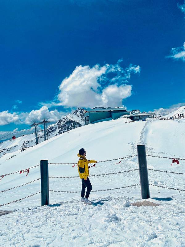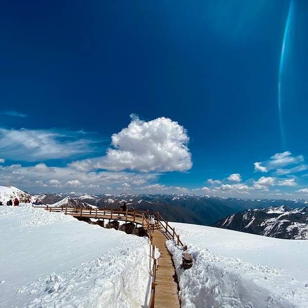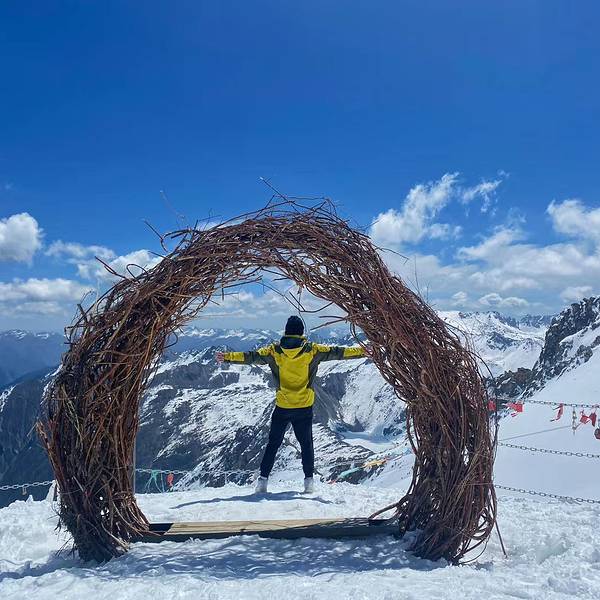 五月初的 成都 天气正合适,不干不燥,一件单薄的春天外套,一条白搭的黑色休闲裤,一双勾勾运动鞋。而我穿着黄色冲锋衣,加绒的裤子,还会感到丝丝寒气,这是冰川5月的天气,山脚稍暖山顶寒风凛冽。达古冰川位于 阿坝 黑水 县一个群山环绕的小县城。达古冰川的山顶终年积雪,气势磅磗,山峰错落有致,如是在天气较日去到山顶,能看到阳光散满雪山的壮丽景色,似银装素裹的美人。5月起意去达古冰川一是因为电影《 中国 机长》的上映,电影中有一组航拍四姑娘山和最后机长开着飞机冲出乌云,最先给到的尽头就是在冰川徒步的登山客,那时的我被电影中的这幅自然风景深深吸引! 川西 小 瑞士 不是浪得虚名。二是在世上最高的咖啡馆喝一杯高原咖啡,你可能喝过很奢侈的咖啡,但一定没有在4860米的咖啡厅,品着卡布奇诺体验窗外冰川夕望曛吧!冰川是我一个人背包前行,路上临时和三位小姐姐组队,我的照片都是她们拍的,旅行中包含我的照片好看与否全凭运气,遇到的伙伴拍照技术好,当然出片,运气不好我也做不了什么,一个人旅行好处是自由随意,坏处是没人拍照,还要帮人拍照。 达古冰川的缆车是如血一般的大红色,适合在缆车中拍照,切记不要乱动,很多人在缆车里就高反了,同行的白衣小姐姐,不幸高反,一个劲儿的吸氧气。在4860米的高山上拍了会儿照,就回到云端咖啡厅休息了。达古冰川达古冰川达古冰川当时拍这张照山,脚都在打颤,迎面脚下是万丈悬崖,山顶寒风吹得脸生疼,张开双手的一刻,心提到了嗓子眼。拍完照后,脚滑了一下,差点下去,吓个半死!在山顶忍受了20分钟寒风侵袭,实在受不了,回到了咖啡馆,点了一杯热气腾腾的咖啡、一块儿草莓蛋糕,蛋糕是冰的,我不知道是天气原因所致还是原本就冷藏保存,入口的时候有点像吃雪糕,味道挺不错的。咖啡味道就一般了,既来之,则安之。毕竟以后就是在冰川喝过咖啡的男人了!价格适中,一共80元!羡慕开咖啡馆的老板,好像是一对情侣,能守着这么美的咖啡店里经营自己的梦是多么美好的一件事儿! 玉剑冰弹,端的是奇缘奇遇。 雪莲鸳谱,冷香飞入诗句。 纵有珠峰,难隔刘郎路。 云深处,愿同偕隐,营屋冰川住。 不敢奢求冰川是窗外之景,能有一处面朝大海春暖花开的房子,云深处,愿同偕隐,就是我最大的梦想。云端咖啡,我喜欢这样叫它,至于它真实的名字或是否有名字,我不知道。caffee on the air充满诗意,白色的屋顶、褐色的墙和蓝天白云雪地相得益彰。2020年让我最满意的出行地就是它了,值得我从 成都 坐车6个多小时,远赴人间惊鸿艳,一睹这人间的盛世颜!攻略信息: 🚗交通攻略:: 成都 — 都江堰 — 汶川 — 茂县 — 黑水 县(达古冰川)将近6个小时的车程 📌实用tips:冰川海拔4860 容易高反的小伙伴意注意买氧气瓶 💰门票很便宜,建议报团一个人400元,因离 成都 很远,开车很累,跟团免去自己开车的烦恼,去游玩过人的经验!