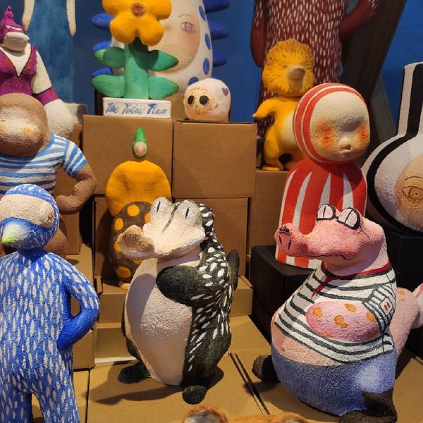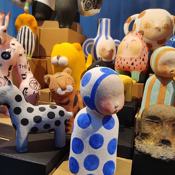 人生须尽欢,赴天目里的沿山河市集啊。朋友来“沿山河”市集摆摊,各种米酒桑葚酒、香氛精油,并没太多让人眼前一亮的摊位。唯一觉得有趣的是梦蝶的台版二手书,还有唐华的超治愈雕塑。