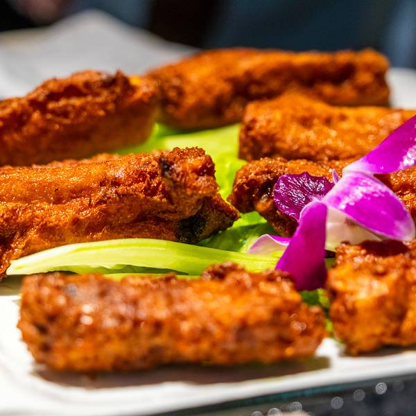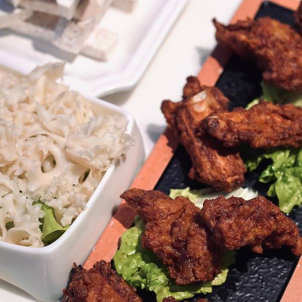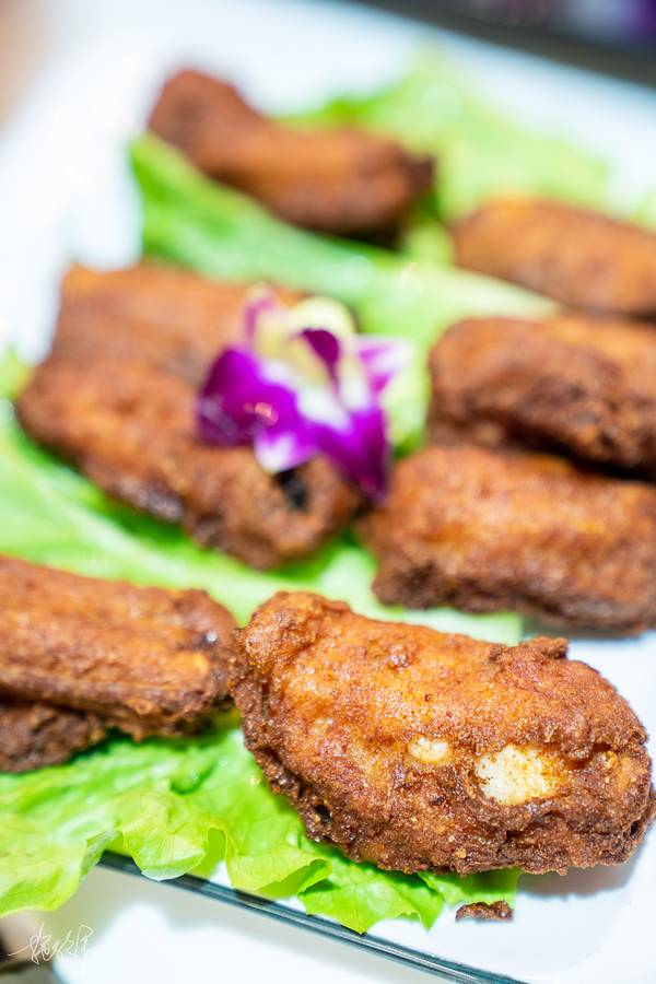 逛着逛着,看到了路边有家萌哒哒椰子鸡,这可是早就在我的打卡清单上的一家店呢。第一顿饭,我们的选择就它了,萌哒哒椰子鸡,一家听起来就很萌的椰子鸡店。萌哒哒椰子鸡的整个就餐环境很有森林风,就仿佛置身于椰树林下,脚下的文昌鸡到处奔跑,仿佛还原了椰子鸡生活的画面。椰子鸡是海南十大名菜之首,总听说有椰汁的鸡肉吃不腻,我们也来试试?入座以后服务员很热情,我们除了点一锅椰子鸡外,还点了藤桥炸排骨、麻辣土鸡脚以及海南定安猪肉粽,虽然是网红店,但幸好都没有踩雷,吃起来很满意。不能错过的花胶木瓜椰子鸡:海南文昌鸡的口感非常嫩滑,搭配三个椰子的椰汁以及木瓜、花胶、莲子、新鲜椰子肉和红枣枸杞做的汤底,还有海椰皇和五指山毛桃等多味珍贵食材,吃起来是既健康又美味。当鸡肉与椰汁充分融合后,一定要记得舀上一碗鸡汤喝,美味。海南香芋,这个香芋和我们在家里看到的不太一样,很绵,煮久一点,入口即化。竹荪是所有配菜里面最爱的了,竹荪口感柔柔嫩嫩的,有点小脆,蘸上萌哒哒家的服务员调配好的酱料,好吃极了。最后要推荐的它们家的藤桥炸排骨,远远就闻到了香炸的味儿,吃进嘴里不油不腻,酥脆,排骨的肉很香,忍不住多吃了几根。