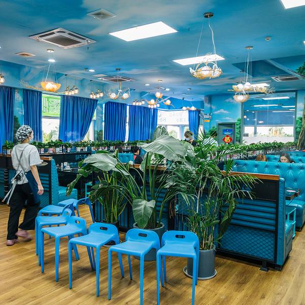 以蓝色调装修契合当地风情,菜品遵循传统。