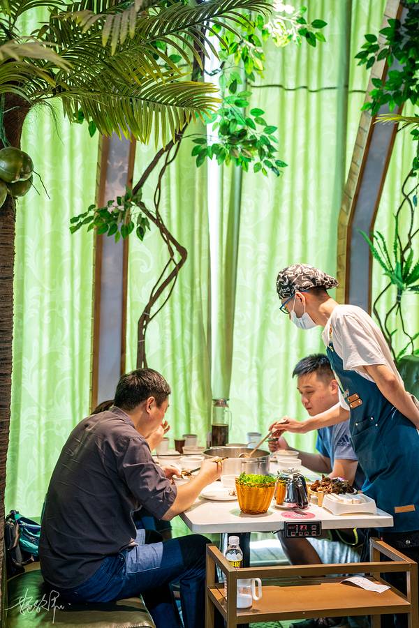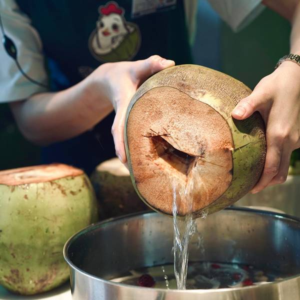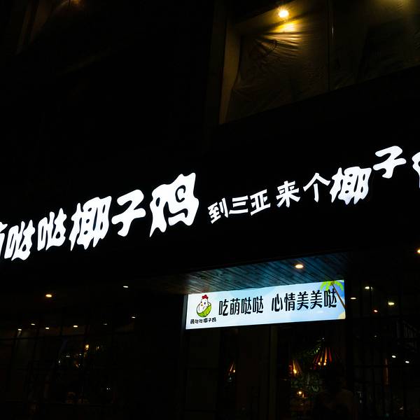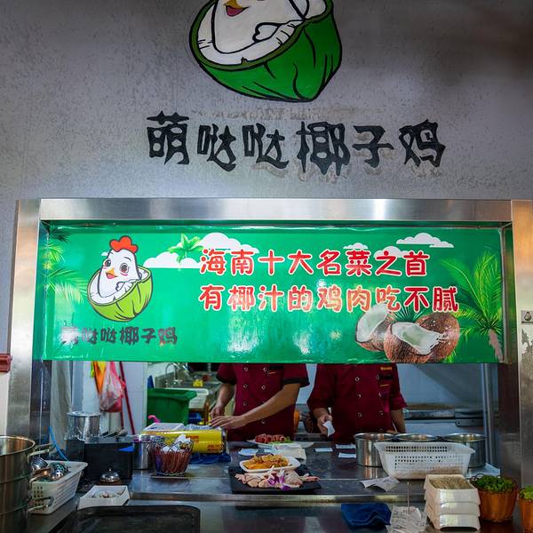 位置:天涯区河西路76号,萌哒哒的椰子鸡(情人桥店家),就在情人桥旁边。 环境:整体装修风格偏原始热带丛林风和工业朋克风,两种风格混合,就餐环境很有特色,在这种环境和氛围里,吃海南本土特色的椰子文昌鸡,别有一番滋味。服务:服务员可谓是眼观六路,耳听八方。什么时间该下椰子,什么时间该下文昌鸡肉,文昌鸡肉要煮多久,服务员都会告知,并且来帮客人下菜,还会用小鸡形状的机械倒计时器,为客人计时鸡肉的时间,非常热情。鸡肉煮好后,服务员还会问客人的口味儿,忌口什么的,然后帮客人调配酱汁蘸料,服务过程也很变通,贴心,周到,让人就餐体验很舒服。