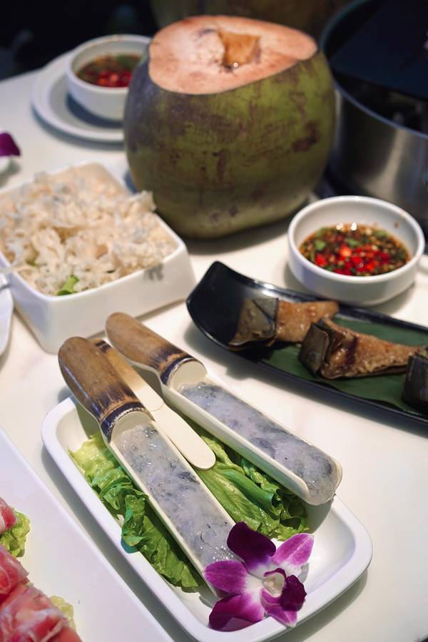 这次来三亚终于吃上了久负盛名的椰子鸡。虽然生活在川渝地区,吃火锅是常事,但清淡的椰子鸡也一直在我的美食必打卡清单之中。本身作为椰汁和鸡肉爱好者,这两种我喜欢的食材搭配在一起,简直正中我心。作为海南十大名菜之首,椰子鸡绝对是到三亚必打卡的美食。这次去了好多人都推荐的萌哒哒椰子鸡,据说是三亚排名第一的椰子鸡,味道很正宗。经过情人桥的时候正好就去打卡啦。据说正宗的椰子鸡是“三个椰子一锅汤”,用纯的椰汁来作为锅底。这家的椰子都是新鲜开的,而且每个都保证了椰汁的丰富程度。锅底里面还放入了红枣、枸杞、椰子肉、珍珠马蹄,看着就很养生。椰汁煮开之后就可以放入鸡肉了。鸡肉看着就很新鲜,选用的是当地放养的正宗文昌鸡。差不多6分钟就可以吃啦,煮好后汤汁清亮,吃肉之前可以先喝一碗原味汤底,有椰汁的香甜,又融合了鸡肉的鲜美。适合喝上好几碗。吃椰子鸡就一定要蘸蘸料,不然稍显有些寡淡。可以直接叫服务员根据自己口味调制。肥美的鸡肉一定要带着鸡皮一起,裹上满满的蘸料,一口下去太绝啦。鸡肉吸收了椰汁的香甜,同时又细嫩Q弹,蘸料的咸香味又加分不少。除了椰子鸡,还可以直接像火锅一样加入一些涮菜。竹荪超级爽滑,是椰子鸡的绝配,裹上汤汁和蘸料味道很丰富。珍珠马蹄小小一个,清甜脆香吃着也很绝。还有海南香芋,煮好后外皮是脆脆的,内里却是软糯香甜。虾滑鲜嫩爽滑超好吃。小菜也同样很推荐,海南蛋黄黑猪肉粽子一定要吃,爆推荐!也是他家的招牌。糯米包裹着咸蛋黄和黑猪肉,口感很丰富,肉的鲜美、蛋黄的油香和糯米的软糯融合,整个让人欲罢不能。还有藤桥炸排骨,菜一上来就香气逼人,忍不住吃了好几块。麻辣土鸡爪,去骨后吃着更香。麻辣的调味刺激味蕾,正好适合开胃。萌哒哒椰子鸡在三亚又很多分店,每家都要排队,所以要吃的记得早点去哦。