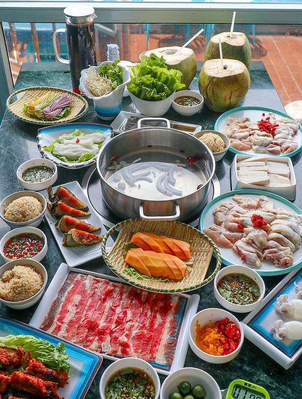 到三亚旅行,让我一吃再吃的美食必须是椰子鸡,每次都会选择到萌哒哒家吃,因为这个品牌在三亚市区情人桥、椰梦长廊,亚龙湾都有店,周边还都是景点,所以可以游玩后再吃,一条龙安排起来,非常方便。因为我们预定的酒店在三亚湾,就很自然而然到萌哒哒椰子鸡的椰梦长廊店就餐,这里的整个店面外观都是蓝色的,非常引人注目。店里面也让人超级惊喜的,还是延续了蓝色的主色调,墙上还有很多的树林手绘图案,有一种走进了爱丽丝梦游仙境般的感觉~座位都是舒适宽敞的卡座,坐起来更加舒服,喜欢看风景的话可以选择坐窗边,一眼望出去就可以看到一片片椰林,在阳光下摇曳着,沿着椰林的尽头就是大海了,仿佛还能听到阵阵海浪的声音而点菜方面,作为一个老熟客,自然没有什么好纠结的,首先必点就是椰子鸡呀!一听到这名字就知道椰子跟鸡就是它的灵魂所在了,萌哒哒家的椰子都是来自很出名的东郊椰林。每个锅底都是三个椰子一瓶矿泉水的配比,刚在入门的时候,就可以看到店里员工在砍椰子,因为都是现砍的所以无比新鲜呢,而且来就餐的人很多,所以每天工作人员都要砍几百上千个~门口的椰子都堆成一座小山了,哈哈而鸡肉呢,都是来自文昌散养的鸡,我们都知道文昌的鸡非常出名,每只鸡都足足养够180天,所以吃起来肉质鲜嫩紧实,口感很赞!上菜以后,店里工作人员会帮忙把椰子水跟矿泉水倒进锅里,再加上红枣,木瓜,马蹄等材料一起,等到锅底来了之后就把鸡肉倒进去,桌子会放着一个计时器,3分钟之后就可以吃啦,煮太久鸡肉会太老,所以要及时捞起来吃哦~装上满满一大碗,喝上一口清甜无比的鸡汤,味道真的绝了,而鸡肉可以蘸着酱料一起吃 。店里有一个位置是专门放置了调料的,建议可以搭配蒜蓉,沙姜、小青橘,小米椒,酱油一起哦,蘸上去超级好吃的,鸡肉皮薄肉厚,肉质细嫩,还带有一股椰子的香味,等到鸡肉吃得差不多,再喝一点汤,之后再慢慢下其他食材。竹笙是一定要点的,这是一种菌类也叫“竹菌”、“竹荪”、“竹松”、“竹萼”、“竹笋菌“等、它的味道鲜美,营养价值也高,放时汤里之后会吸收鸡汤的鲜甜,吃起来更加棒,爽爽脆脆的。喜欢吃海鲜的话,可以点Q弹的墨鱼仔,下锅后煮个几分钟就可以吃啦,当然也可以像吃鸡肉一样蘸上酱料,这样就更加入味,也可以直接吃,原汁原味,保留了海鲜的鲜跟甜。店里的马鲛鱼滑也是一大特色,据说是用南海深海的马鲛鱼肉去骨后,手打而成,然后再分别把它们挂在汤勺里,就可以直接放进锅里煮,吃起来口感很鲜嫩,还有很香的马鲛鱼味道~黑猪肉粽也超级好吃的,因为里面馅料很多,有香糯可口的糯米、还有咸香的蛋黄、再加上定安的黑猪肉,这几样融合在一起真的棒极了,绝配呀。竹筒烤肉粒也是店里的一道特色菜品,造型很别致,上面这层是猪肉烤制后切片,下面还有一层芋头,有一点点像粤菜风格,但口感层次更丰富。还有一道叫藤桥排骨我也很喜欢,外酥里嫩,咬一口肉汁满满,吃起来太满足啦。 营业时间:11:00-22:00 地址: 三亚 市天涯区 三亚湾 路88号(小海豚海鲜广场3、4楼) 人均:110元左右