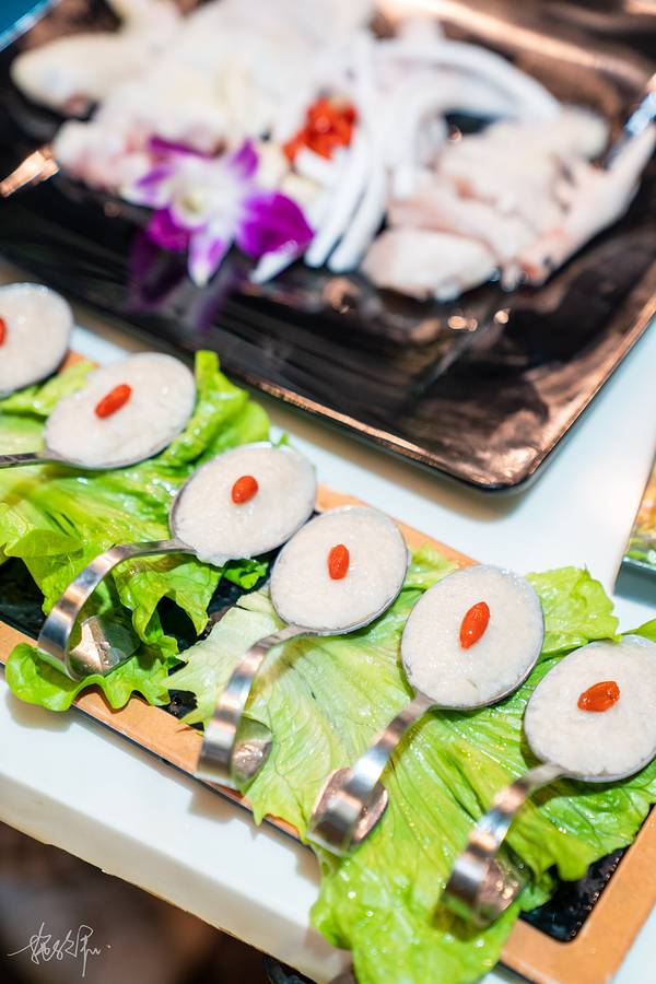 竹荪是所有配菜里面最爱的了,竹荪口感柔柔嫩嫩的,有点小脆,蘸上萌哒哒家的服务员调配好的酱料,好吃极了