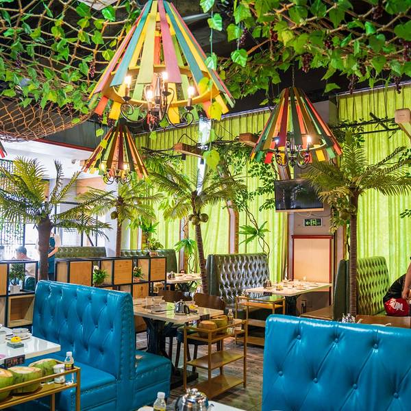 ...,两种风格混合,就餐环境很有特色,在这种环境和氛围里,吃海南本土特色的椰子文昌鸡,别有一番滋味