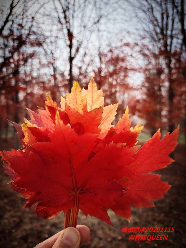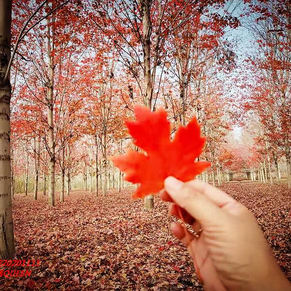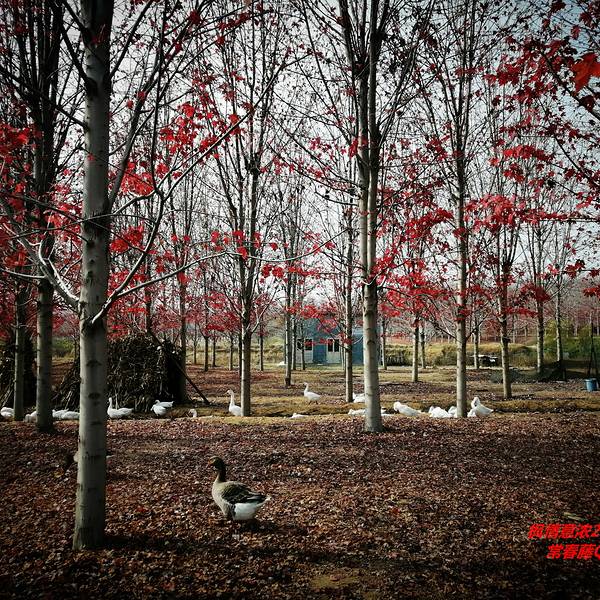 无意中发现了一个周末悠闲的好去处,黄岛张家楼千亩枫树林。虽然来时,枫叶最佳赏时有点晚,十月下旬应该最好。但是在游玩的过程中却是满心的欢喜。风和日丽,秋高气爽,穿行于林中,踩着厚厚的落叶,脚下发出沙沙沙地响声。。。放眼望去,满眼火红,如同油画般。秋风微拂,火红的枫叶随风摇曳,有的随风起舞,有的纷飞飘落。感慨万千,人生百态,难不成还不如一枚小小的枫叶,逆风而行,果断勇敢,涅槃重生。一群大鹅亦悠然自得,在林中肆意的摇晃,对游客毫无惧怕。旁边还圈有一只大黑狗,样子很是凶恶。。。我不喜欢,就不让它出镜,嘿嘿。。。霜降时节,千亩红枫,层林尽染,五色斑斓。随手一拍,画面美不胜收。 明年我还来,还要穿着飘逸的长裙,尽情的拍拍拍。随手捡起一片,细观像心,一颗有爱的红心,一颗热情似火的心。给予生活美好的向往与奔放。阳光透过叶片,玲珑透明,叶脉蜿蜒,犹如一团火,明媚了时光!观景须知 观赏时间:每年10月下旬至11月上旬,按往年经验,霜降后半个月内欣赏正当时哟! 观赏地址:青岛西海岸新区张家楼镇驻地,张家楼中学北300米 交通指南:地铁13号线张家楼镇站 自驾路线:青岛胶州湾隧道—双珠路—G204—石楼街—青岛珠山芝田生态园