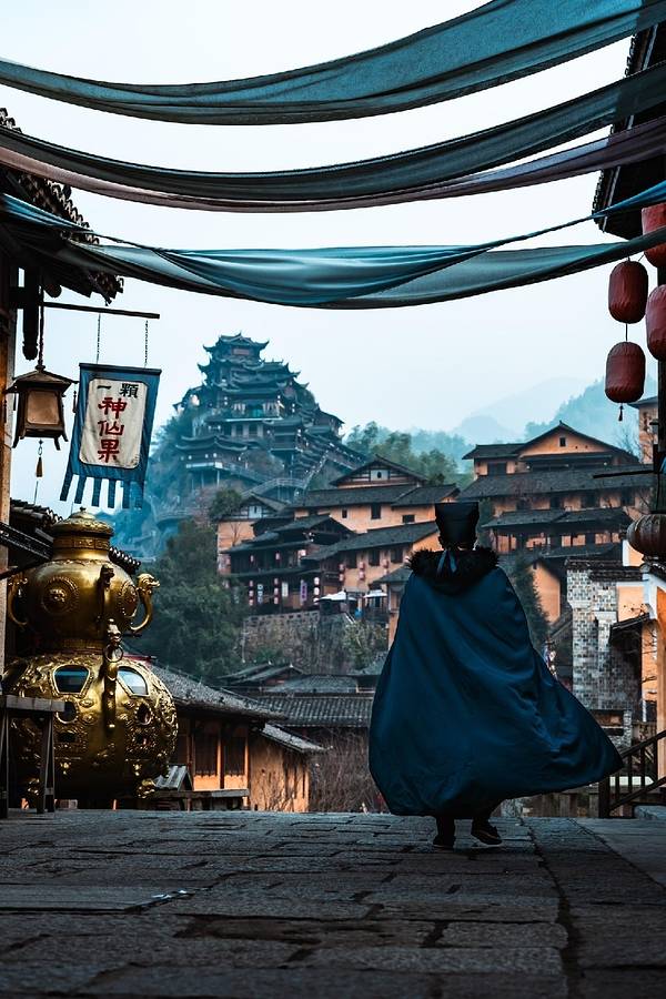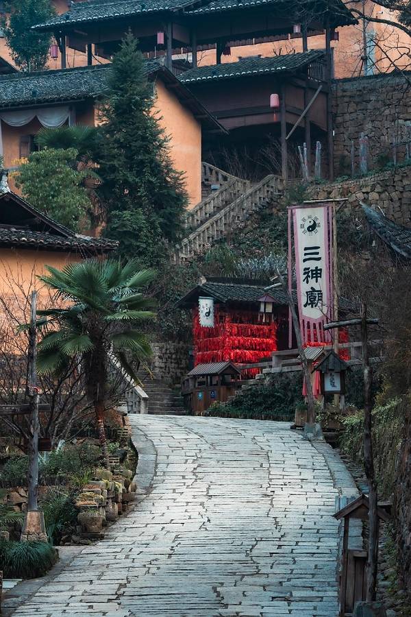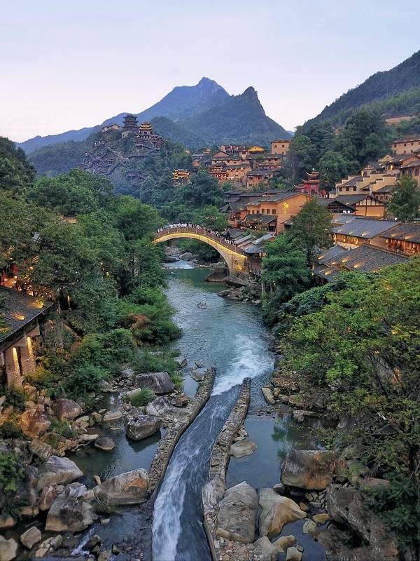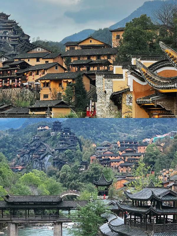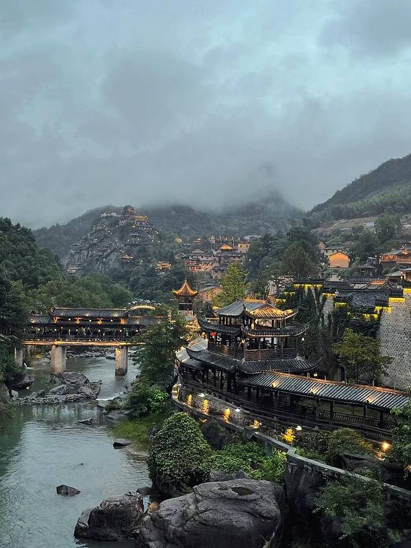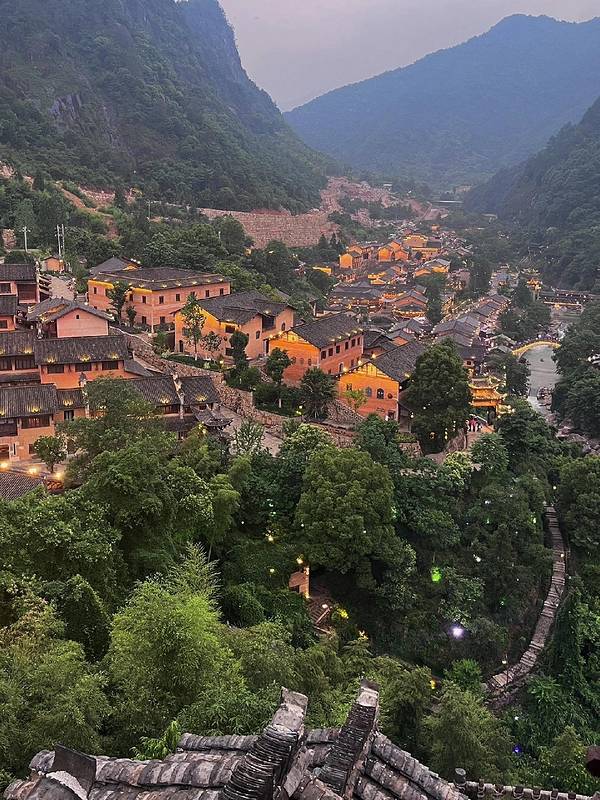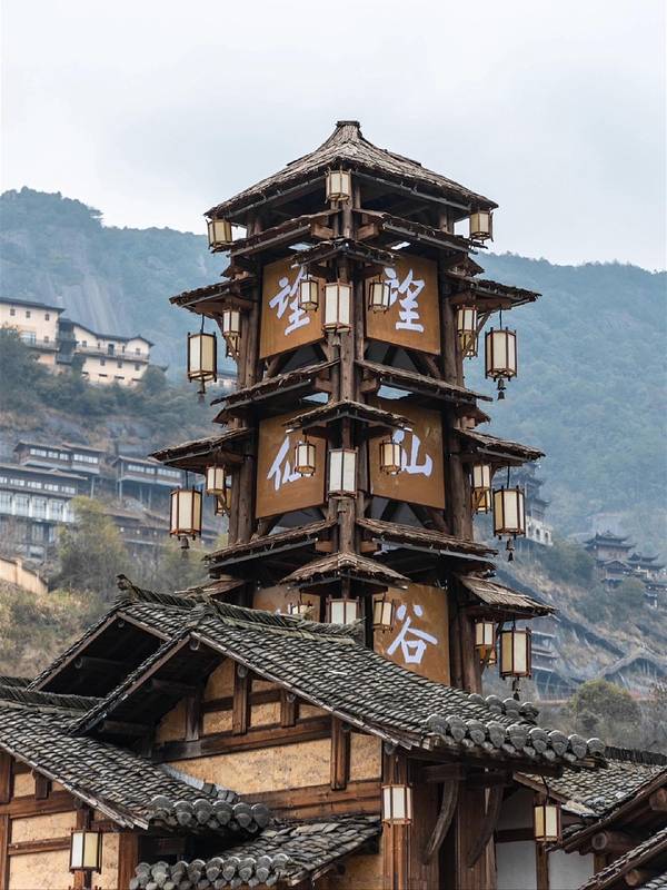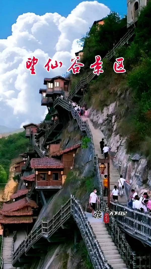 望仙谷坐落在壮丽的山峦之间,这里的小镇仿佛悬挂在悬崖之上,远离尘嚣。古朴的建筑和自然风光交织在一起,形成了一幅绝美的画卷。