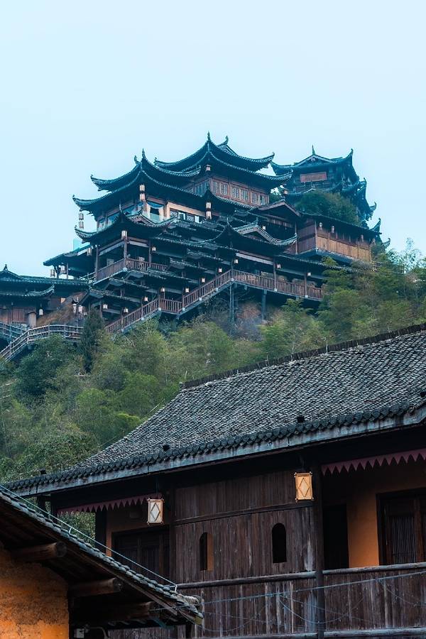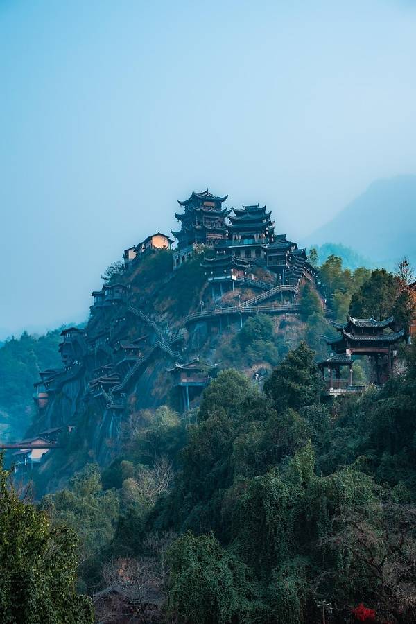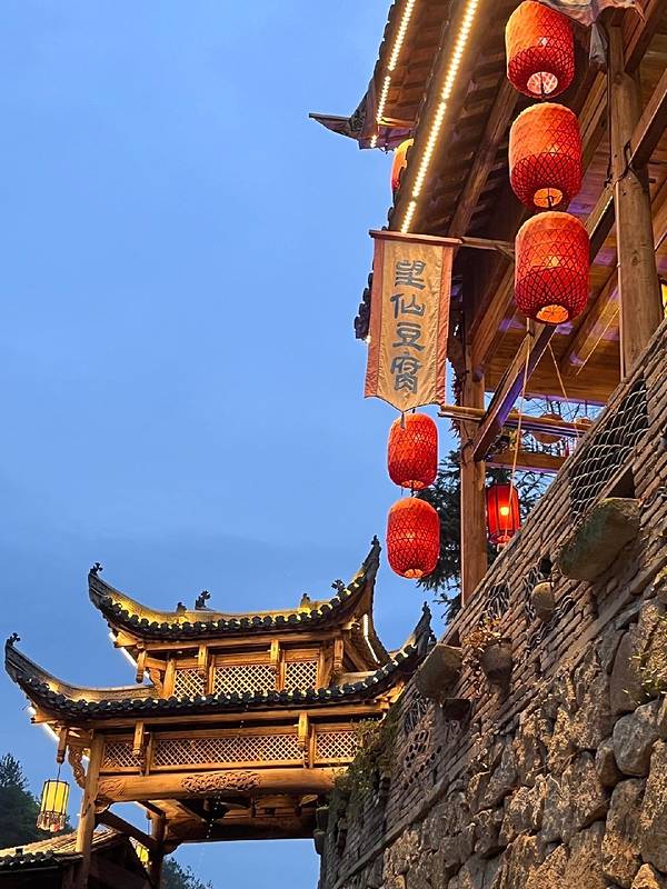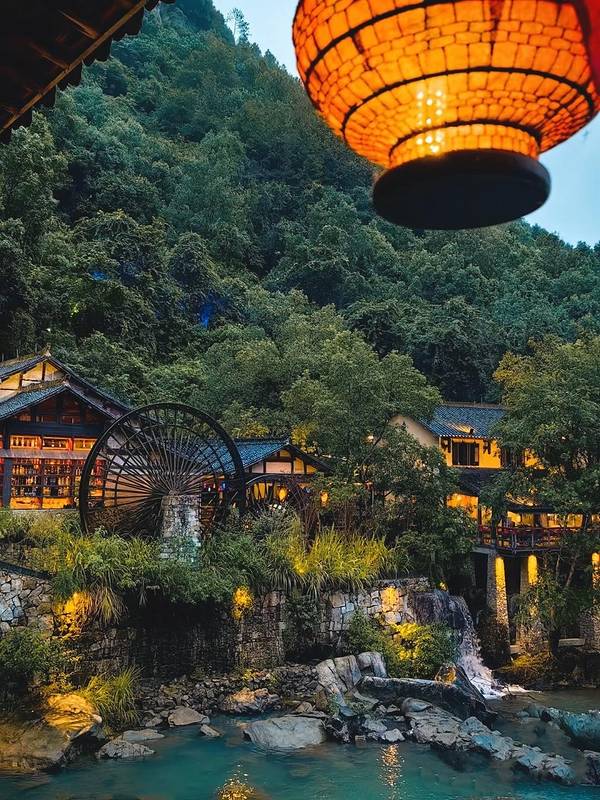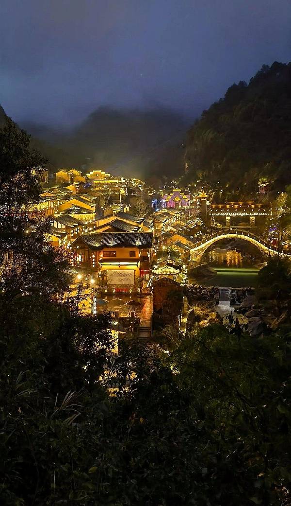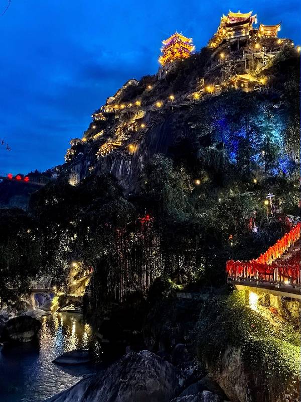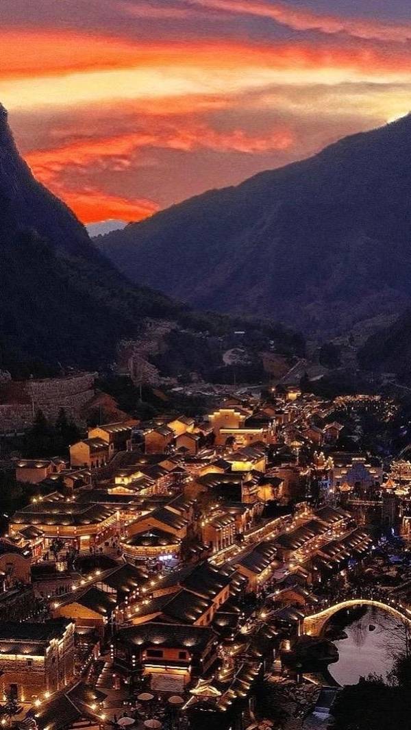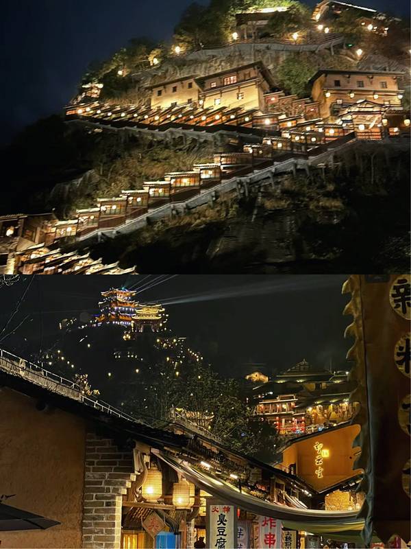▲悬崖民宿群+百尺飞瀑!汉服拍照圣地,傍晚悬崖栈道亮灯时,仿佛《苍兰诀》场景还原