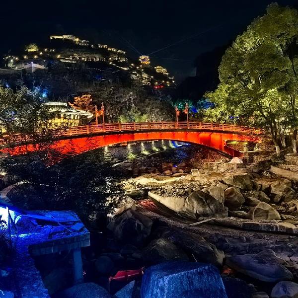 ⭕️这个景区不大,环形路线,白天不建议上悬崖峭壁上,上面没有吃的,下来吧!有点累,放到最后游玩,就在核心景区内游玩、打卡、节目、漂流、 美食街、18:30左右开灯,这就意味着要开始拍照了……
