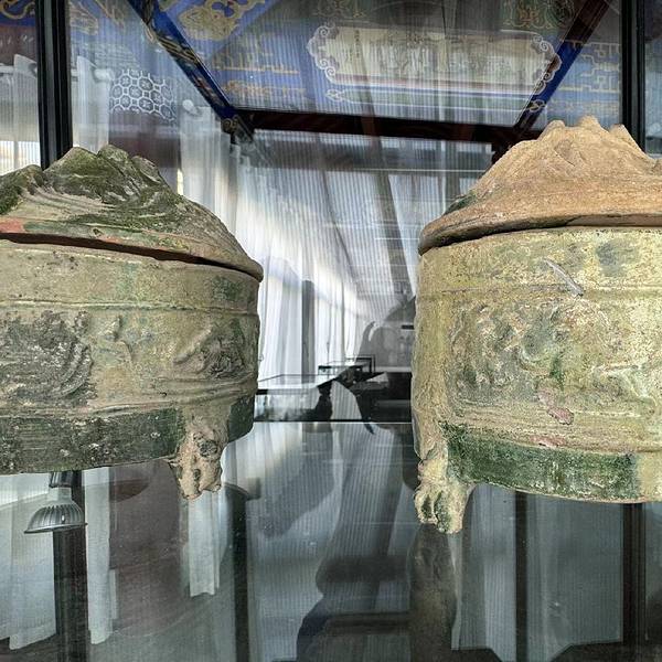 打卡天水成纪博物馆。在展厅看见了这几件造型奇特的器物。其中三件青铜器,一件陶器。因为没有专业知识,很好奇这几件器物是用来做什么的。大概猜测是用来盛放一些物品,具体是食物还是酒或是其他什么东西呢?