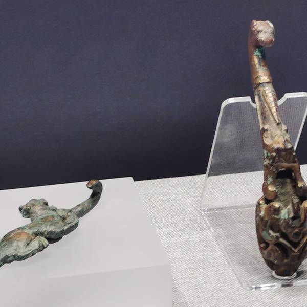 最早的玉器,并非完全是工艺品,除去装饰之用,还被用作祭祀、礼仪和丧葬。 带钩是古人系结腰带的挂钩,在黄河流域最早出现在山东蓬莱村里集7号西周晚期墓。春秋战国时开始流行,秦汉时已极为普及。带钩在魏晋以后衰落,失去实际功用,成为士人把玩的器物。 砚台既是实用工具,又是文人与书斋中把玩、清供的佳器。汉晋的砖砚、瓦砚,唐代的澄泥砚,唐宋以后最为流行的端歙石砚,都是备受关注的古砚上品。