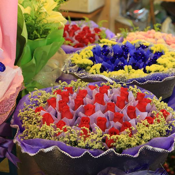 玫瑰有的五块八块一把 我买的15一把17支的双色玫瑰 活了三天了还挺好 北京不常见很喜欢。蓝色妖姬就是干花自己染色的15一把10支扎手的很 不过以前没买过蓝色妖姬不懂 尝试下。向日葵双花瓣的10元五朵。普通的向日...玫瑰有的五块八块一把 我买的15一把17支的双色玫瑰 活了三天了还挺好 北京不常见很喜欢。蓝色妖姬就是干花自己染色的15一把10支扎手的很 不过以前没买过蓝色妖姬不懂 尝试下。向日葵双花瓣的10元五朵。普通的向日葵五元五朵。向日葵三天已蔫不推荐。种子绣球花那种大种子10元四个。别的小袋袋的十块四包。