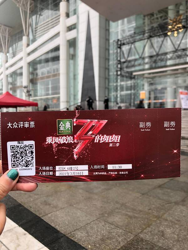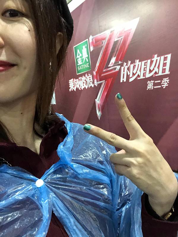 姐姐们 我来了!潮湿的马桶连霍汶希都有应援?!!入口处周笔畅粉丝派的纸巾 可爱实用!过了三个关终于领到票 原来不是指定好座位的 是按排队先后顺序派的 我哭除了纸巾门票身份证其他都不可以带进去 会派发一个快递袋让你把物品打包好寄存12点候场 1点进场 2点半开始录制 一直到7点半结束 开场的马赛克乐队 姐姐们的六个show 黄子韬的两首歌 两个特备表演 很精彩 值了! 出来的时候下大雨有派发一次性雨衣和"赵星儿"合照一杯幽兰拿铁慰藉一下我疲惫的心灵后记:在我火眼金睛的观察下 在总决赛上和下都找到了自己出现的小小镜头(嘻)