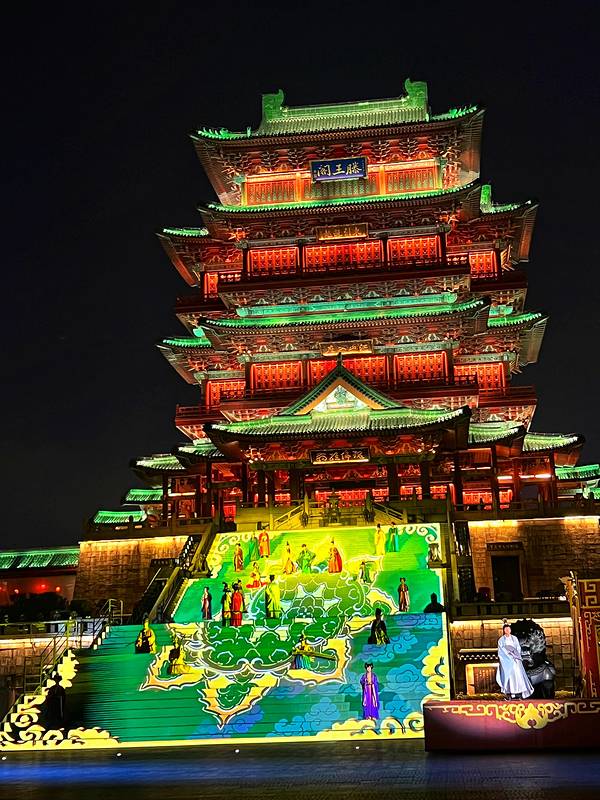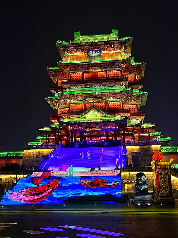 《一秒跨千年,梦回滕王府》 有着2000多年悠久历史的豫章古城,一提到地标自然想到的是唐代大诗人王勃口中“落霞与孤鹜齐飞,秋水共长天一色”的滕王阁。来南昌旅行,除了白天登临赣江之滨的滕王阁俯瞰赣江及两岸风光,也一定不要错过夜晚来滕王阁欣赏如梦如幻的《寻梦滕王阁》实景演出。 自2021年1月1日晚,《寻梦滕王阁》大型实景演出在南昌滕王阁景区内对外首场公演起,我们看的是第332场,演出主要以历史时间和历史事件为主轴线,介绍了滕王阁的兴衰更替。 由于提前早早购买兑换了门票(越早买票座位顺序越前面哦),晚上7点准时进场,先是简单游园,对着灯光映衬下的滕王阁狂拍。 时间到点,演出开始,据演出中声乐介绍:《寻梦滕王阁》以“七梦七境”为核心,由梦中之阁为序幕,以绘制滕王阁建筑图纸的梁思成为引,王勃作《滕王阁序》开启,七境为风骨,汇聚江西各个朝代的圣贤,超越时空相聚滕王阁。七境分为“梦中之阁”、“山河之阁”、“社稷之阁”、“风雨之阁”、“情爱之阁”、“心印之阁”、“盛世之阁”7个篇章,将千里逢迎,高朋满座的盛世夜宴跃然奉上。演出中有王勃“落霞与孤鹜齐飞,秋水共长天一色”的才情;苏轼三次登临抄写《滕王阁》的专注;王安石不熄雄志滕王阁下题“白浪翻江无已时,陈蕃徐稚去何之”;沙场名臣辛弃疾气吞万里如虎;文天祥留取丹心挥斥方遒;汤显祖写下如花美眷似水流年《牡丹亭》情不知所起一往而深;王阳明见本心“此花与汝同归于寂”……七种人生境界,展盛世气象之恢弘,百姓民生之兴旺,聚英雄志士的碧血丹心,融才子佳人的缠绵悱恻。 作为观众,感悟一座建筑如何在历史的长河里几经风雨历程屹立至今,感慨历史长河里的人,他们的英名永存,可容颜不再。 作为江南三大名楼之首的滕王阁,历经29次重建。如今被《寻梦滕王阁》在新时代用科技与艺术的重现。这是一场带你穿越时空,领略盛唐气势,欣赏滕王雅宴,一睹圣贤风采的盛宴! 南昌最美古风夜,大唐气象今犹在,一秒跨千年,梦回滕王府…… 小贴士: 寻梦滕王阁 地址 : 江西省南昌市东湖区仿古街58号(滕王阁景区内); 寻梦滕王阁演出票价:成人票:168元/人,儿童票:98元/人(网络购票有优惠,某年卡免费预约看一次); 寻梦滕王阁演出时间:每晚19:45,游园时间:19:00-22:30; 交通:最快捷南昌地铁1号线【万寿宫】站3号口出,沿榕门路步行800米,即到滕王阁旅游景区。 观演攻略: 1. 《寻梦滕王阁》演出为滕王阁夜游+实景演出模式,夜游不包括登滕王阁主楼。阁前广场主演出时间50分钟左右,然后前往北园途经三桥广场体验互动散点循环演出,最后在滕王阁北园演古说今古戏台欣赏歌舞《蝶》,整体观演游览时长约90分钟。 2. 建议提前购买门票,因为越早买票座位顺序越前面哦。 3.《寻梦滕王阁》演出场地在滕王阁景区内,观众19:00之后才可以入园,演出时间在每晚19:45。 4. 座位为露天场,夏天记得防暑,冬天记得防寒(至少我们12月去时现场有点冷); 5. 建议拍照点滕王阁➡️灯笼墙➡️赣江江景➡️文创店;滕王阁随便一拍都是大片,夜景不是白天可比的;一定记得要在灯笼墙合影拍照,这是一个网红打卡地,几乎看完演出的朋友,最后都会在这里拍照;沿着北区一路走沿线可以看到美丽的江景,对岸的双子塔,还可以看到滕王阁游轮;最后滕王阁文创店,纪念品点等值得看看拍拍。 6. 主持人杨澜作为《寻梦滕王阁》的总策划人,如果要说和张艺谋的印象系列演出相比,《寻梦滕王阁》更显皇家名楼的气势背景,而《印象系列》则以当地民俗风景为背景。