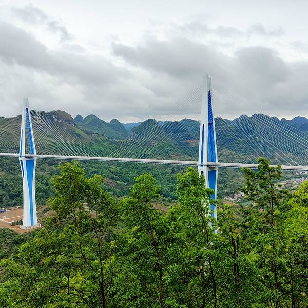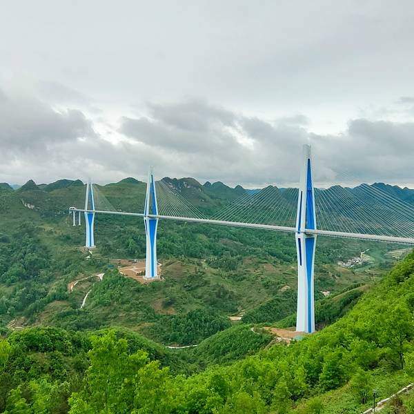 大桥主塔高332米,相当于110层楼高,是世界最高混凝土桥塔。2016年4月开工建设,2019年建成