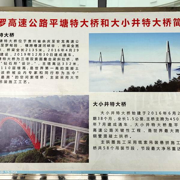 天空之桥为平塘特大桥,位于平塘县牙舟镇与通州镇之间,横跨槽渡河大峡谷,桥宽30.2米,全长2135米。2016年4月开工建设,2019年建成。大桥主塔高332米,相当于110层楼高,是世界最高混凝土桥塔。属于世界级桥梁,...