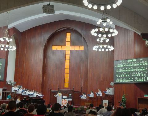 这次出行前高德上查了离酒店500多米就有一个教堂,第二天早上和父母去了教堂。教堂外观是已现代化建筑了,里面一楼还保留原来的风格。