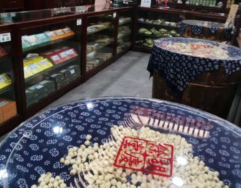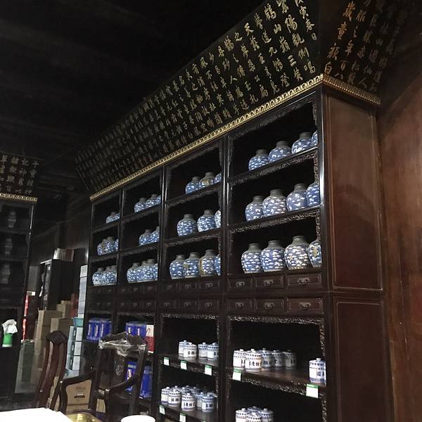 雕梁画栋,一进门就有些中药的气味,历史很悠久了,陈设基本还是原来的模样,侧面有一小庭院,很有江南风格