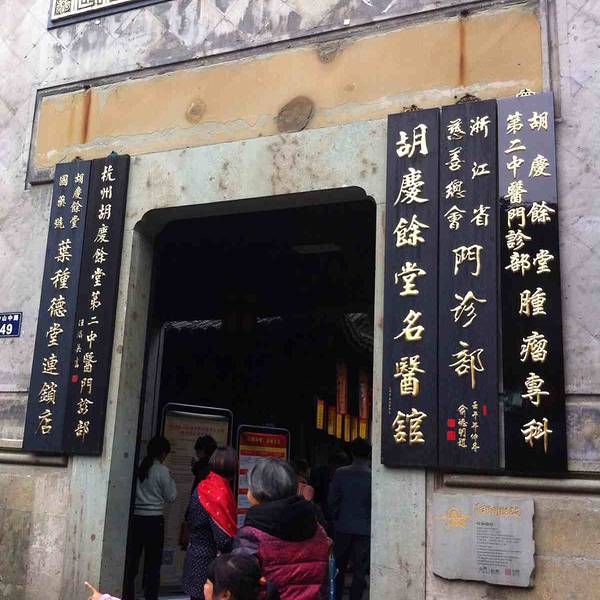 从鼓楼站下来往河坊街里走左拐远远的就能看到胡庆余堂了,在杭州是很有名气的中医馆,挂号费有点贵,我们是因为妈妈腿不舒服来找张医生的,也是名医,老中医,态度也超好的。医馆一进门就有个免费的清凉的茶水,还提供一次性杯子,这个服务很贴心,我们看完后配中药时间有点久了,因为是在中午人少需要的时间就更长了,我们一行人去逛河坊街了,非常非常的热闹啊,有种古老美,卖的东西有点贵了,河坊街到头就是吴山广场,这里的人相对来说没那么多了,大概玩了一个小时后去拿药结果还是没配好,药的袋子要收钱,一开始就跟医生说好可以选择不要的,下午医馆里人慢慢多起来,建议来看病的话最好早点来,这样就不会耽搁太多的时间,走廊里也贴着药材的温馨提示,我们去了好多次,有点效果的