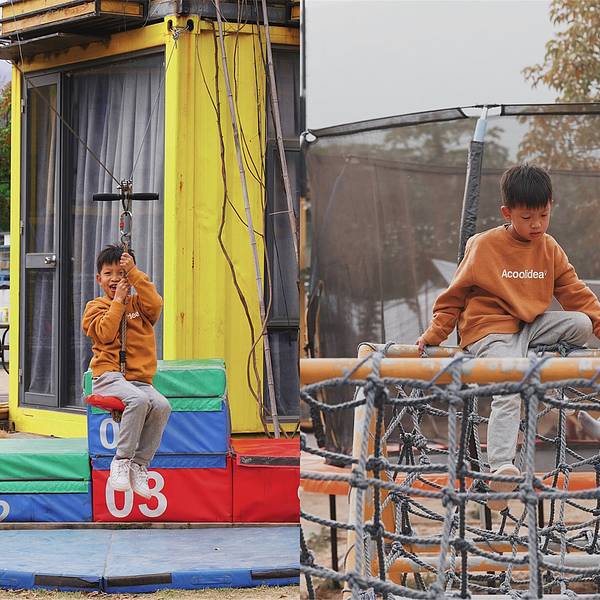 地址: 厦门 海沧天竺 山西 路1号(近天竺山公园西门) 交通:适合自驾,️车子可以停在门口的小路上。或者到东孚地铁站附近再打车。 时间:周二到周五只有下午和晚上,周末全天,周一休息不开放。 门票 两大一小亲子票98元 单买40元 一大一小的下午茶158元 帐篷露营过夜两大一小398元 野好社区位于天竺山脚下,距离天竺山森林公园西门很近。是一个以运动主题为主综合露天场馆。进入营区首先看到的是攀爬挑战区,孩子们可以嗨玩一天的地方,主要是滑索、高空走钢索,攀岩等等,相对于商场里的器材,这些看起来非常专业,而且保护措施也很到位。孩子们在挑战的同时也能得积累自信心,获得成就感。运动竞赛区占整个营地的很大一部分,两块五人制足球场尽情挥洒汗水,篮球场是永远的主角,人少也可以玩,羽毛球和乒乓球场地有遮阳,在没有太阳的地方挥拍,感觉不错,射箭是桃大王最喜欢的项目,虽然力气太小每次都脱靶啦。营地帐篷区,对于亲子家庭来说,这一片区域是最舒适的,在营地帐篷享受番茄羊肉小火锅后,孩子们去放飞自我,家长们也可以享受一个美美的下午茶,整个营地格调很好,随手一拍都是大片。