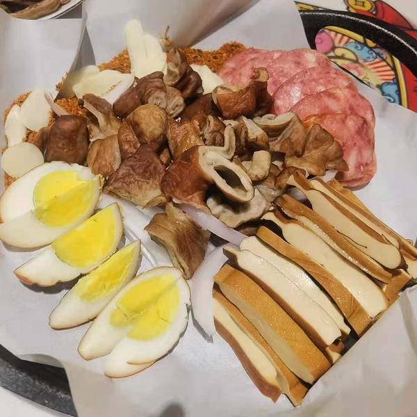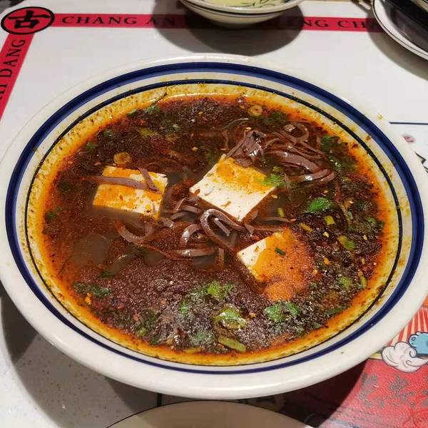 出来荐福寺,随意找了这家长安大牌档吃早晚饭,感觉一般般,不如大厨小馆。西安六大碗镜糕,类似八宝饭!羊血做的面条!为了这道卤肉等了半个小时,结果大失所望,卤肉没看到,看到只是上面这些!