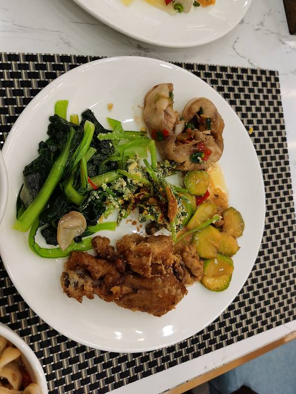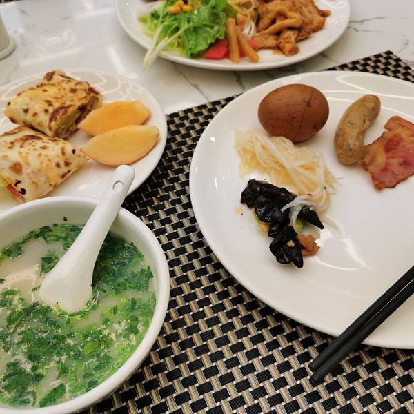站了一下午以后累了,因为外面一直下雨,就直接打车回了酒店,在一层直接撕了自助菜品种类不算多,不过一直都是买的上菜快,小菜,凉菜,主食,甜品种类多,推荐刀削面。