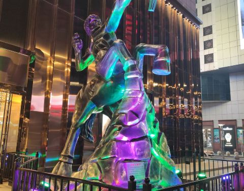 武汉广场在武汉国际广场旁边,门口有两个比较巨大又造型奇怪的铜雕像,从我记事起一直耸立到现在就没变过,为这一点就该对武汉广场点赞!
