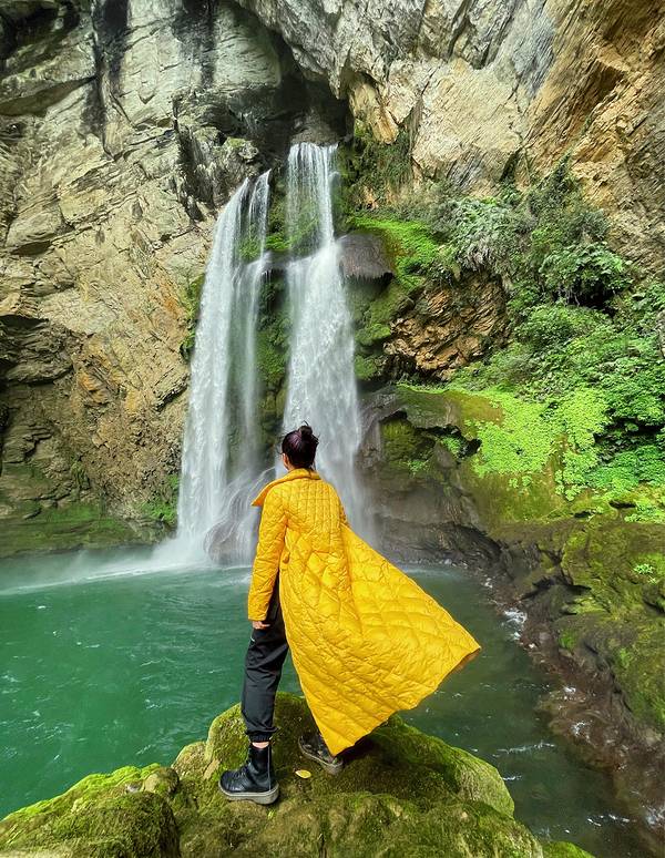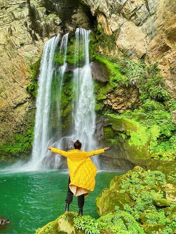 地址:贵阳市清镇市羊皮洞 门票:无 开放时间:全天 自驾:直接导航羊皮洞,从贵阳市过去大概一个半小时,可以直接导航在入口的收费停车农庄,停车费15元 注意事项:1、从收费农庄往前走几十米就是入ロ了2、去洞穴的途中会有岔路口,记得所有岔路口都走右手边的道3我们去的当天没下雨,路挺好走,下去半小时、上来大概40分钟,尽量避免雨天去,路滑应该不好走4、尽量穿亮色衣服,更出片5、现在不是丰水期,水不大,但除了瀑布还有不少好拍的地方6瀑布下拍照注意安全,旁边的石头很滑 7 临近瀑布水很大,容易滑容易湿也容易脏,所以建议多带一双鞋 拍照攻略:1、图二拍照点:背对瀑布往上拍2、图六梯田拍照点:入口拐弯处直走几十米往下看有一大片梯田3、图九拍照点:途中大概1/3处 4、可以使用对讲机和模特进行沟通,因为瀑布前水声很大,即使离得很近也很难沟通,是真的听不见