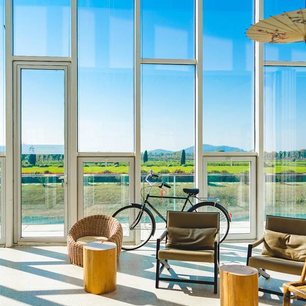 他是隐匿在城市中的归园田居,体验大自然的馈赠,刚到农场就被大厅前面的这块大大的落地窗吸引住了,走进去,阳光透近玻璃,洒了一地的温暖。听说这里还有一场房车营地,于是我们今天的目标便是这里了,在房车营...