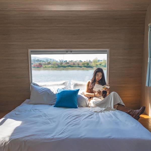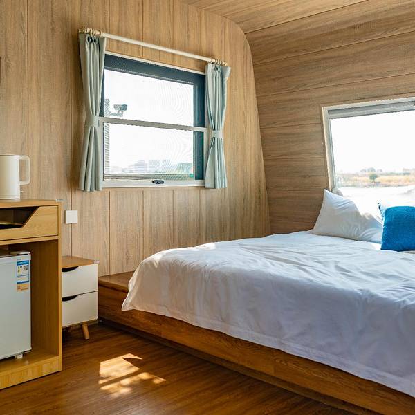 他是隐匿在城市中的归园田居,体验大自然的馈赠,刚到农场就被大厅前面的这块大大的落地窗吸引住了,走进去,阳光透近玻璃,洒了一地的温暖。听说这里还有一场房车营地,于是我们今天的目标便是这里了,在房车营地体验诗与远方。 这次有个特殊的交通工具,开高尔夫球车去体验房车营地,期间遇见了一大片绿油油的田野。临湖而建的房车营地,抬头,透过房间的玻璃就可以看到这片宁静的湖水,房间宽敞明亮,软硬件设施齐全,环境超棒。抬头,向窗外望去,便是远方,低头,看一本简单书,便是我的心中的诗,清晨醒来,伸个懒腰,开启一天的浪漫旅程。柳叶随风飘起,坐在门口的秋千上,虽没有面朝大海的波澜壮阔,却也有着面朝湖水的小家碧玉。找一个周末不妨到这里来一场春日之行吧