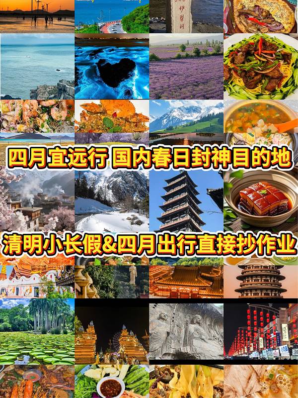 四月旅行:这些春日目的地让你心动不已🌸✈️ 春天是一个充满希望与美丽的季节,四月的国内旅行绝对让人心潮澎湃。无论是欣赏洛阳的牡丹,感受西双版纳的泼水节,还是在扬州的烟雨中漫步,都让每一位旅行者重新认识这个神奇的季节。今天,我就来推荐一些四月最值得前往的地方,让你的春日旅程充满色彩和欢笑!🌷 河南·洛阳(4.1–4.30 第43届牡丹文化节) 在洛阳,四月就是牡丹的盛宴。气温适中,12到25℃,阳光明媚,非常适合穿上汉服去拍照。活动丰富多彩,4月1日的开幕式在隋唐城植物园举行,还有龙门石窟夜游等精彩节目等你来参与。走访王城公园,沉浸在盛开的牡丹之中,接着去龙门石窟探索千年佛教文化,最后别忘了在十字街尝一尝水席的滋味!🌺📷 云南·西双版纳(4.12–4.15 傣历1388年泼水节) 西双版纳的泼水节是每年春天的高光时刻。气候热带湿润,22到32℃,做好防晒准备是必不可少的。从4月12日的迎新晚会到全民泼水狂欢,整个过程充满了欢乐与热情。告庄西双景是必去之地,而万象夜市的烧烤绝对让你流连忘返。🌊🎉 江苏·扬州(烟花三月,琼花/晚樱盛放) 扬州在四月的烟雨中显得格外迷人,气温在14到24℃之间,记得带上薄外套和雨具。从瘦西湖的游船上欣赏春光,到鉴真路的樱花大道漫步,还有东关街的非遗展演,每一处都散发着浓厚的人文气息。别忘了在这里品尝正宗的扬州炒饭与烫干丝哦!🌧️🥢 西藏·林芝(第23届桃花旅游文化节,4月初至中旬) 到了林芝,桃花绽放的季节让人心醉。气温8到18℃,山上的温差较大,出行时记得带上冲锋衣。在嘎拉桃花村和索松村,桃花和雪山交相辉映,是拍照的绝佳地点。官方活动如星空音乐派对和非遗市集,将为你的旅行增添无限色彩。🌸🏔️ 新疆·伊犁(4月上旬 吐尔根杏花沟盛花期) 在伊犁,杏花的粉白花海吸引着每一位游客,气温8到20℃,适合分层穿衣。杏花节的摄影采风活动让你沉浸在美丽的自然中,体验哈萨克民俗文化的活动同样值得期待。在杏花沟观看日出,再去那拉提草原踏春,享受一夜住毡房,尝试地道的马奶酒,绝对难忘!🌼🐴 福建·平潭(4月蓝眼泪高发期) 平潭的海岸风光魅力无穷,气温12到20℃,海风呼啸,防风外套必不可少。4月是蓝眼泪出现的最佳时机,坛南湾和长江澳的风车田是观察蓝眼泪的好地方。你可以骑行在北部湾的廊道上,也可以在夜晚追逐蓝眼泪,享受海鲜大排档的美味。💙🌊 小贴士: 1. 四月初的清明长假,很多热门目的地如洛阳、西双版纳和扬州需要提前预订住宿和门票。 2. 前往高原和山区的林芝、伊犁,记得做好防晒和补水,避免高反。 3. 参加泼水节一定要穿速干衣,同时准备好手机防水袋哦! 让四月的旅行带你领略春天的无尽魅力,记得用心去享受每一个瞬间!🌍💖