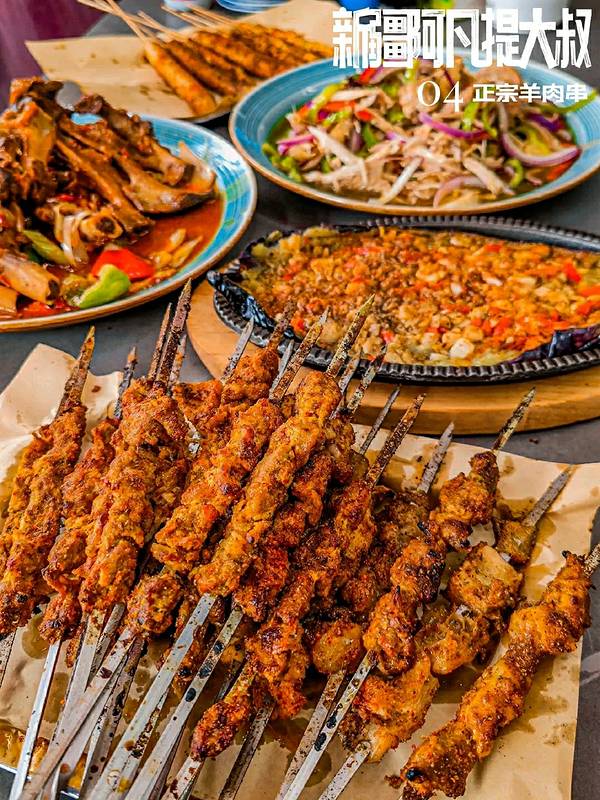 🥭还去什么新疆啊~想跟朋友撸串来这里啊! 路过这里就闻到了羊肉串的香味~店里师♡傅在烤架上忙着烤串,滋滋冒油! 这家是比较地道的清♡真餐厅!从老♡板到店员都是清一色新疆人! 🍓我去过一次新疆,大盘鸡和羊肉串是真的好吃,又多又鲜美,他们那边的肉是真的美味! 而这家店所有的肉,面,油,羊肉串都是从新疆空运过来的! ————————🌵环境🌵———————— 店面很干净整洁,然后烤串的地方是在后方,你可以现场看师♡傅烤串,然后吃饭的时候又不会被油烟熏到! 除此之外,满满的一大冰柜,能看到满满的肉类!肉眼可见的新鲜干净卫生!吃一个放心! ————————推荐指南♡———————— 羊肉串 肉块特别大,一串也很长~ 烤之前还会淋上秘♡制酱汁,碳火上烤~ 一大把拿上桌太诱人了,肥瘦相间料很足,肥肉的部位尤其香!趁热吃味道蕞好~ 新疆特色椒麻鸡 真的吃一次就沦陷了!我原来只吃过大盘鸡 鸡肉紧实椒麻味十足!那个椒椒麻麻的味道,直击灵魂深处,嘴唇在颤抖但是还想吃! 蒜蓉大茄子 蒜香味浓郁!油激发了香味!松软的口感非常下饭! 爆炒香辣羊骨头肉 羊骨裹上浓浓的酱汁,上面的肉连着筋 胶原蛋白充足,一口下去太满足! 吃完了后可以吸吮骨髓,这才是精华 💛店名:新疆阿凡提大叔正宗羊肉串 💛地址:金色夏威夷84-170号