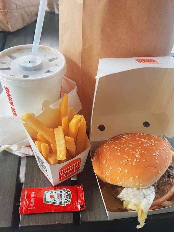 刚好碰上了装修,室内没办法坐,全部要到外面露天小花园去坐,中午时间人多,要拼桌了。 出品方面,因为是连锁经营,质量还是有保证的,我是特别喜欢这家店的薯条,粗粗的咬着外脆里软的,好好吃。包是新鲜做的,料足。 淘金地铁站B出口旁边、世贸中心大厦的后面,交通便利,周围写字楼众多~~ 服务人员特别热情,从协助点餐、到等候、到取餐、全程热心服务~~ 这个品牌的汉堡🍔口感确实比较好吃,唯一的遗憾就是,份量稍微少了一点点,希望能够把汉堡再稍微做大一丢丢~~ 性价比高,很多套餐优惠选择,总有一个适合自己,而且多到有选择困难,出餐快,但还是喜欢招牌的皇堡。 BURGER KING一直都是最爱,没有之一喔^_^