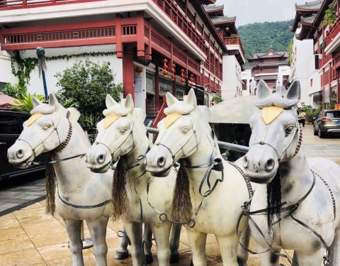 门面很大气,建筑非常适合拍照,分为明清大街秦汉大街唐宋三大街,如果没记错的话,里面的艺术馆十二点至两点闭馆,游客中心可以走楼梯到顶层,整体风景不错,趣味性一般,不需要门票,拍照确实美,里面有个求签的地方,太不准啦求了两个完全相反寓意的签还被提醒功德箱