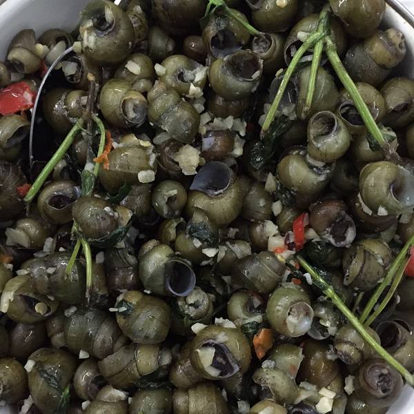 从大埔返深的时候,闷哥还带了一些大埔的田螺。在大埔时就有吃过大哥家的辣炒田螺,这次呢,是闷哥亲自动手烹饪。头一次知道闷哥还会下厨房。。。炒的田螺倒也确实好吃。