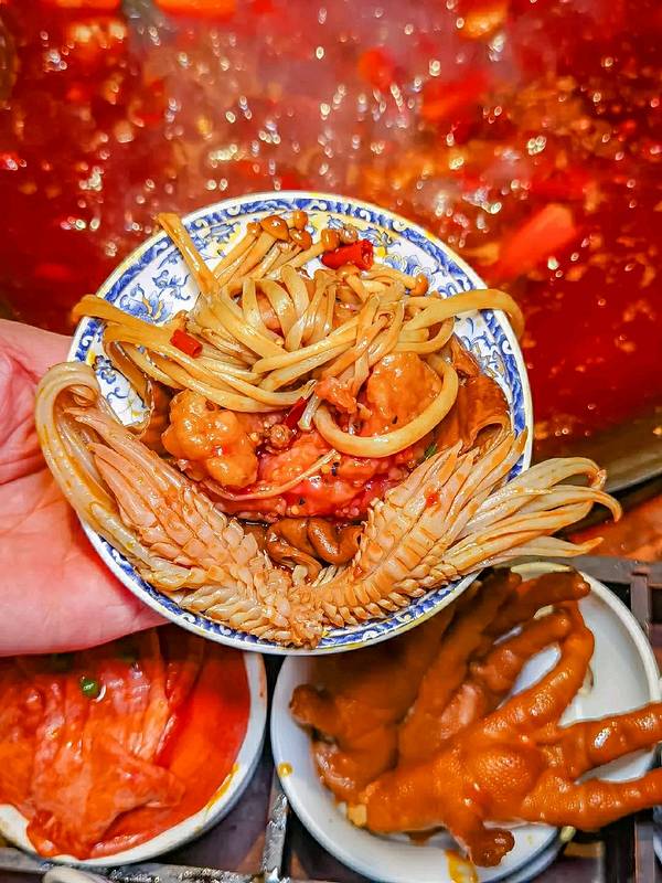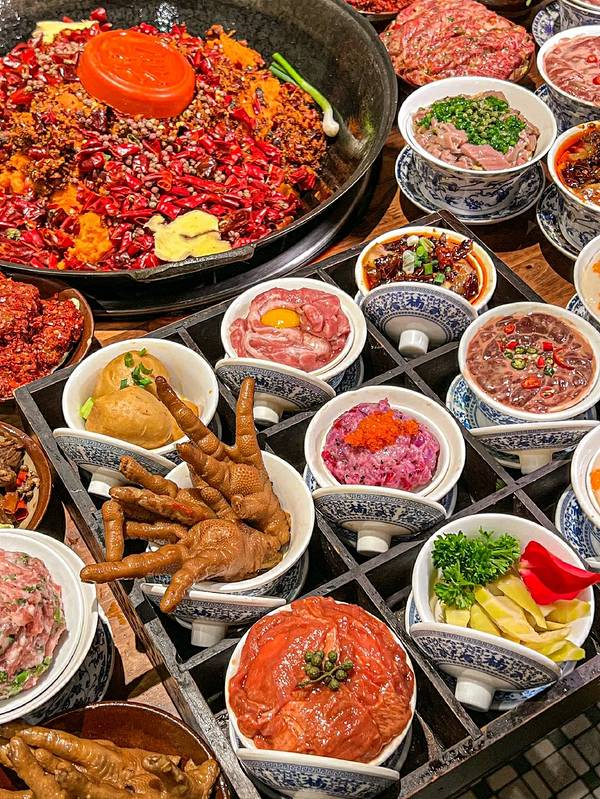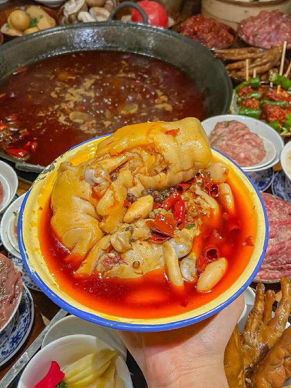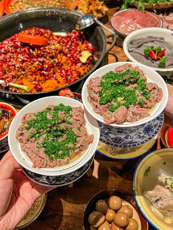 楠火锅的千层冰第一次吃就爱了,满满一大碗,足足有30厘米高,还有五种不同口味,夏天来了,宝子们可以冲了! —— ⛩️楠火锅(太古里那边总店) 📍地址:东大街下东大街段166号1楼 —— 这家位置很好找,就在太古里旁边的晶融汇对面,环境是满满的怀旧风格。门口的小卖部,社区宣传栏,方块白瓷砖砌的花台,绿色的窗户和大木门,一下就回到小时候的单元楼小区。 店内还有各种招牌,整个环境很适合拍照,文艺和复古都🉑。特别是里面的二楼,更有感觉。 点单推荐: ♨️红锅锅底 大铁锅里用料很足,五斤牛油加上大把的花椒辣椒,看着就让人流口水。加上老鹰茶,锅底味道更醇厚,越煮越香,就是重庆老火锅的味儿! ♨️豆汤蹄花 第一次在火锅店里吃到蹄花汤,口感弹软嫩滑,汤里加了药膳,味道更浓郁,还可以解辣解腻,配火锅吃正好。 小提示:蹄花汤可以直接吃,也可以煮火锅吃,在红锅里煮过的蹄花麻辣入味,肉质更软糯,大家可以试试 ♨️藤椒腰花 拌了藤椒料的腰花,口感鲜咸酥麻,在红锅里烫好之后,吃起来是脆嫩中带麻辣的口感,用来拌蛋炒饭更好吃。 ♨️手工苕皮 现摊的苕皮,裹满辣椒油,上桌就可以直接吃,口感弹软有嚼劲。也可以在红锅里烫一下,吃起来更软糯爽滑。还可以用来卷菜,想吃什么就用苕皮卷,自己DIY的更好吃 ♨️五种口味千层冰 这个真是吃一次就爱的,口感绵密软滑,一层一层叠起来满满一大碗,还有饼干、果粒、巧克力酱,配料很丰富! 我比较喜欢☑️霸气杨枝甘露千层冰,浓浓的芒果香味,里面还有西柚果粒,清爽解腻的口感,搭配火锅正好。 还有☑️霸气红豆抹茶千层冰,红豆配抹茶,经典的搭配,味道浓郁香甜,喜欢抹茶的宝子们记得点一份哦! 其他还有♨️九宫格特色菜拼盘 ♨️火箭鱿鱼 ♨️尖椒掌中宝 ♨️耙牛肉 ♨️卤肥肠……好吃的太多了😋