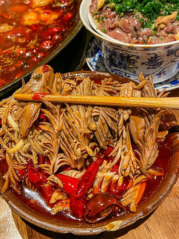 之前看到密子君的视频就一直馋这家的火锅‼️ 这次终于和朋友们来吃啦! 夏天到了可以吃冰咯🧊店内还巨无霸千层冰🍧回头率超高!夏天吃简直太爽啦 - ‼️必点菜品 ✔️手工苕皮 现摊的苕皮面上涂满了香香辣辣的海椒油??️口感糯糯的,但是煮久了也不会那么容易煮烂!比脸大的苕皮吃起来也太过瘾了! ✔️藤椒腰花 用🍵盖碗茶具装起来的,造型满分💯藤椒味的腰花烫熟了吃起来口感麻麻辣辣的,腰花爽脆,一点也不会腥???? ✔️豆汤蹄花 养生男孩女孩们的必点菜之一☝🏻蹄花汤熬得雪白雪白的,喝起来还有股药膳味儿,可以说是很养生了👌🏻猪蹄炖得软糯溜耙,喜欢吃重口味的朋友还可以直接把猪蹄放到锅里面煮 ✔️千层冰系列 千层冰内卷天花板了属于是,一共有5⃣️种口味👉红豆抹茶、奥利奥、焦糖咖啡、棉花糖、杨枝甘露这五种味道都很好吃😋 我最爱红豆抹茶口味的,抹茶味十足,边上还撒了一圈的脆脆巧克力圈🍫吃起来一点都不甜腻,真的绝了