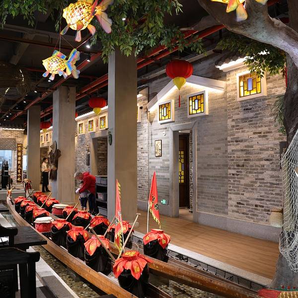 顺德美食可是名扬天下,这个周末又去顺德觅食啦!这次想品尝一下地道的顺德捞起鱼生,于是来到了这间捞德顺·顺德鱼生私房菜,果真这间店排场挺大的,停车场就非常宽敞,进去大厅也非常宽敞,可以办宴会的规模了。大厅餐桌都是实木桌椅深色油漆,沉稳大气,一车还设置了两只长长的龙舟,龙舟里摆满了一排豉和酒坛,霸气十足,西西小朋友跑过去击了一下骨,鼓声饱满,特别悦耳。处理鱼生的厨房就在大厅旁边,仅隔一层玻璃窗,可以站在这里观察厨师是如何处理鱼生的,厨房里边宽敞明亮,师傅身穿白色厨师工装,手戴隔离手套,把瘦身的皖鱼细细的切割成薄片装盘,整个过程专业而且卫生。捞起顺德鱼生,取材于优质的皖鱼,鱼肉晶莹透亮,干净可以生食,在里边再加入多种佐料:洋葱、姜丝、花生米、脆片、葱丝、百合、芝麻……把它们放在一起搅拌搅拌,味道就出来了,鱼肉的鲜美,洋葱的鲜甜、脆片的焦脆,混在一起的味道棒极了,还真的是跟瓦萨比三文鱼不一样的感觉。烤乳鸽,烤到可是刚刚好,表皮烤至金黄焦脆,泛起微微的油光,轻轻一撕,咬一块肉到嘴里,肉香扑鼻,这个外焦里嫩的烤乳鸽,小朋友吃得可香了!吃嘛嘛香!百花酿鱼皮,这个鱼颜值可高了,都是精选的鱼肚肉,去掉鳞片后,好吃的鱼皮胶原蛋白保留着,煎至两面金黄,骨刺已全部去除,尽情大快朵颐黑松露啫啫鸡,香香的一煲鸡肉,鸡肉上面都是黑乎乎的东西,第一眼像是炒糊了,其实是裹了一层黑松露吧,味道也是绝绝子,鸡肉嫩滑很入味。百花酿鱼皮,绝绝子!捞起顺德鱼生,鱼肉晶莹透亮青龙仔生炒糯米饭,青龙仔龙虾炒糯米饭,香喷喷的真好吃呀,摆盘也特别的精致,看起来赏心悦目,吃到肚子里也特别的满足。鱼汤浸西洋菜咸菜干鱼茸粥,菜干粥在顺德很普遍了,白粥里加入菜干很入味,妹妹很喜欢这个粥了,喝了两碗。小朋友在这里玩得很开心!关于服务:专业的人做专业的事,上菜都改由机器人送菜了,小小机器人直接来到桌子旁边,服务员再端上桌,上菜比较及时,热菜过来都是热腾腾的,鱼生上桌,服务员马上帮助拌好,加茶加水都非常及时,全家在这里就餐很愉快呢!粤捞越顺,捞个风生水起少见的海鱼南瓜开会富有岭南风情的大厅和包厢活蹦乱跳的大虾【捞德顺美食攻略】 餐厅名称:捞德顺·顺德鱼生私房菜 详细地址:佛山市顺德区江南大道59号(广东水之乡产业园) 交通攻略:推荐自驾前往,门口停车位充足 营业时间:11:00~14:30,17:00~21:30 推荐菜品:顺德捞起鱼生 餐厅环境:宽敞大气,岭南风情 人均消费:150元 周边景点:渔人码头