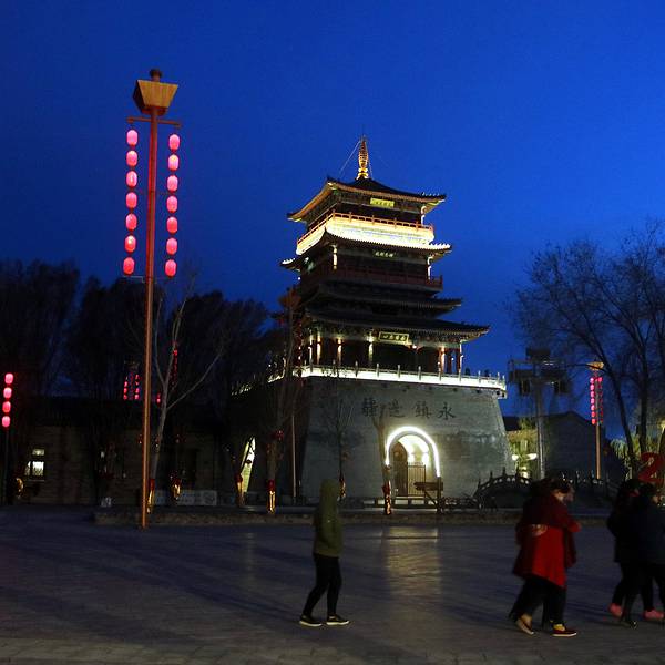 古城中心的门楼,大书永镇边疆四字,气势不凡。 还有当地人在广场上跳舞。一群当地人聚在城楼中聊天