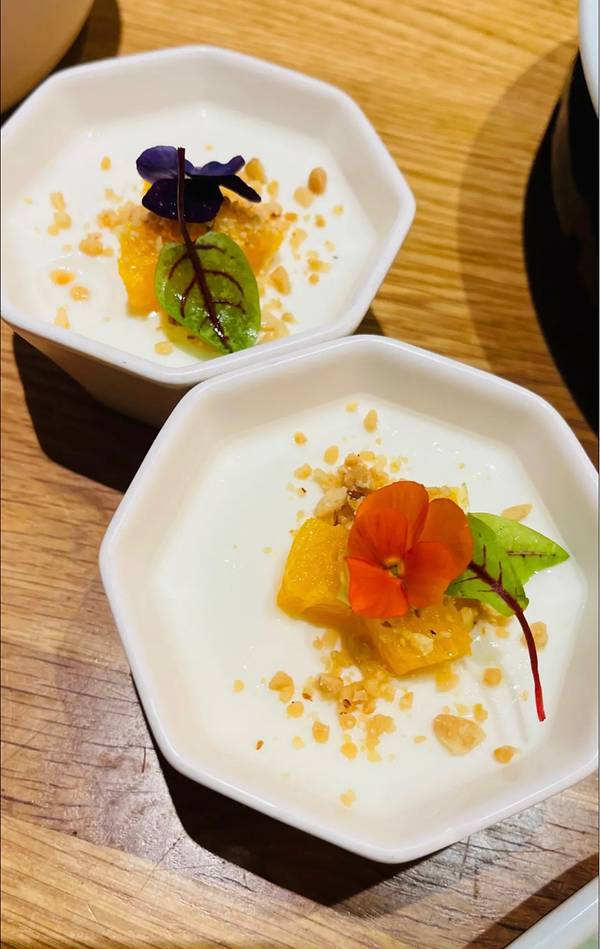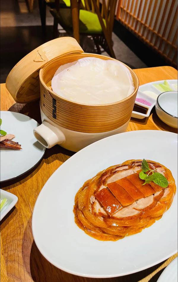 餐厅位于马连道茶叶城十字路口东北角的临街门脸儿,建议选择公共交通工具,门口没有停车位。 很幸运,这已经是第二次中他家的霸王餐,相比于上次这次的霸王餐内容更加丰富,烤鸭、鲜花椒澳洲小牛肉、黑松露乾坤袋、湖南丝瓜、脆皮乳鸽、松茸排骨汤、酸奶还有米饭。其中印象最为深刻的就是鲜花椒澳洲小牛肉,牛肉烤的恰到好多,不生不老,嚼劲十足,很是好吃。脆皮乳鸽外焦里嫩,要是旁边能来点椒盐之类的蘸着吃就更好了。