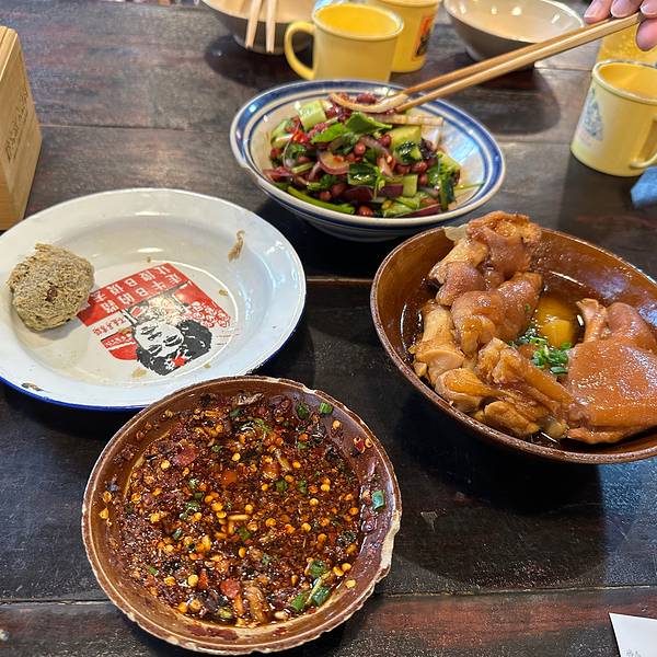 贵阳的第一顿饭也是最为满意的一顿,不到6点走到了饭店还不用排队,等吃完后已经拍了好多。 四个人点了几道推荐菜,鱼没有用黄鱼变成了鲤鱼是遗憾,猪蹄一定要点,豆豉猪肉也是特色,三道菜是全场最佳,其他的都不踩雷可以盲点。饭店还有自酿的啤酒也很清爽。一桌子二百多感叹了贵阳的物价喜人,果然是好吃的地方,给了我再玩的理由。