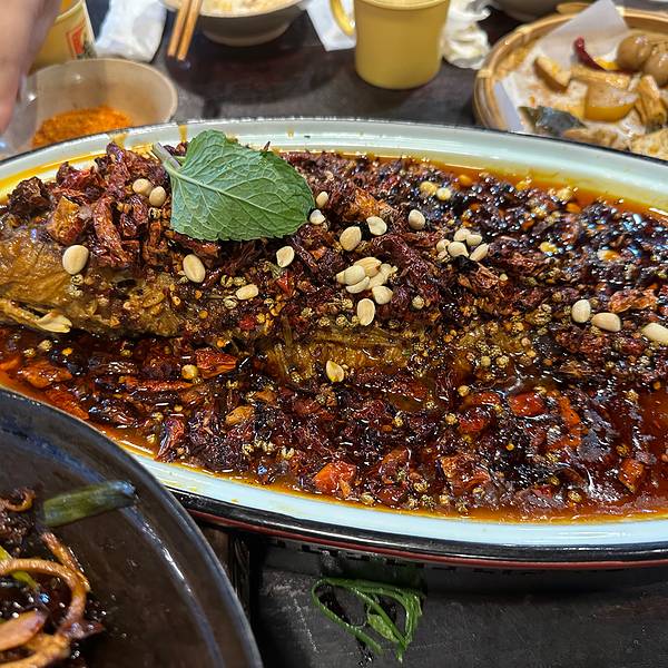 贵阳的第一顿饭也是最为满意的一顿,不到6点走到了饭店还不用排队,等吃完后已经拍了好多。 四个人点了几道推荐菜,鱼没有用黄鱼变成了鲤鱼是遗憾,猪蹄一定要点,豆豉猪肉也是特色,三道菜是全场最佳,其他的都...