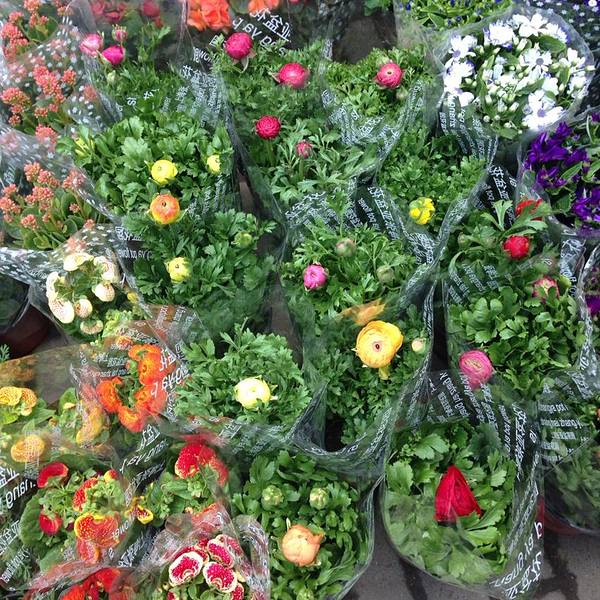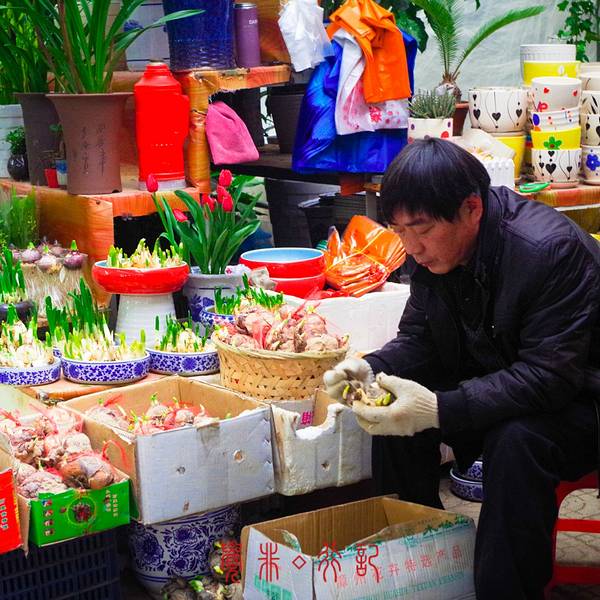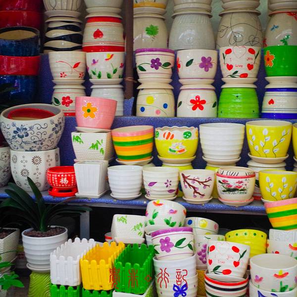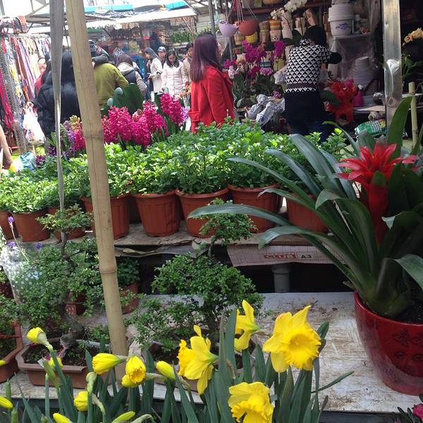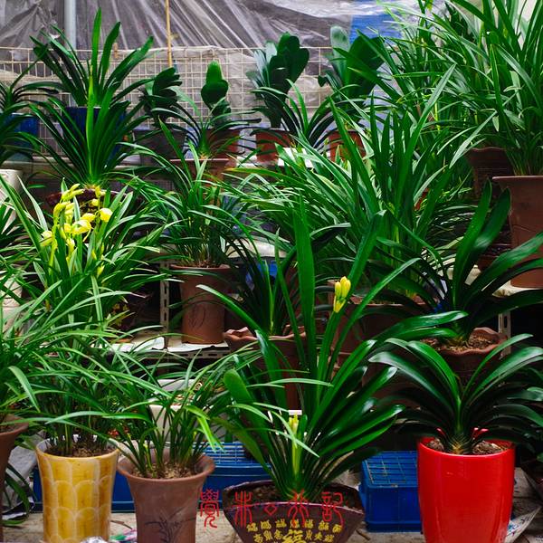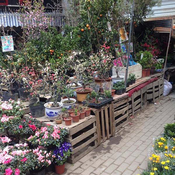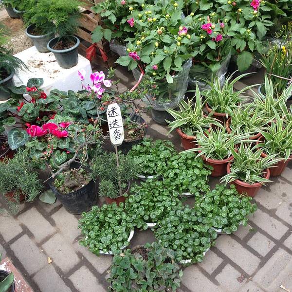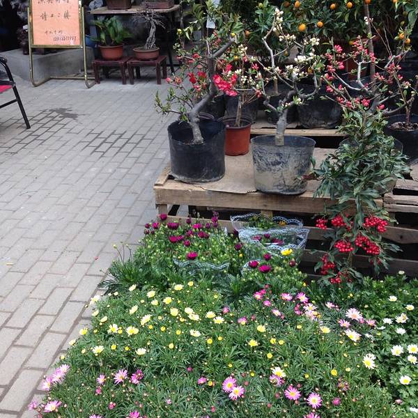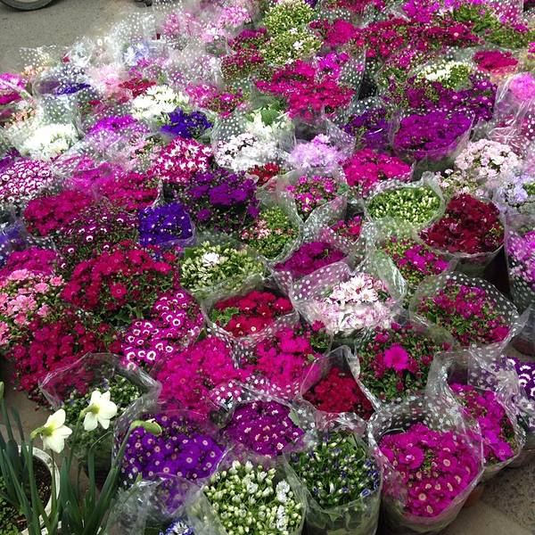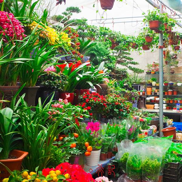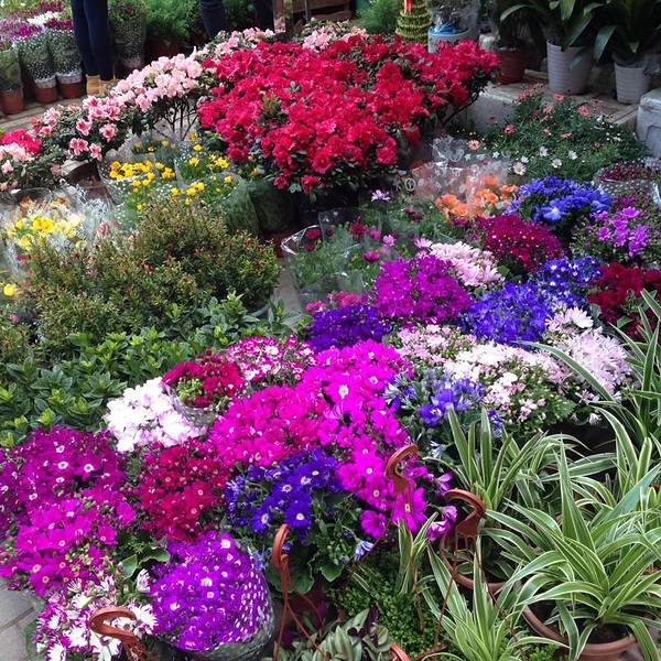 很多很多的鸟类花类的市场,街上随处可见各种花