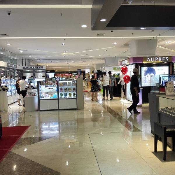 是一家大型的综合体商场,首先,商场的位置肯定是当地最好的位置,主要是依靠人流量才能立足的,商场在营口算是比较有名的商场之一了,定位应该是属于小奢的定位。不过商场还是非常有自己的特色的,分析一下,首先,商场的规模在营口算是比较大的,人气还是比较足的,商场的各项服务很标准,员工服装统一,且看起来挺职业的,员工人数挺多的,既然是综合体,那就是应有尽有,主要是卖服装的,一楼也有珠宝,好一点的有周大福,香港品牌,其他都是国内的品牌,商场的装修不奢,倒能算得上宽敞,舒适,大气,高档,就是在一些走廊里,走几步路就能看到有场景布置,非常不错,也挺新颖的,很多在超级大的商场才能见到,服装分男装,女装,童装都有男鞋,女鞋品牌也比较多,也有化妆品,楼上还有一些餐饮的,而且餐饮的部分装修得都挺有情调的,简约,干净,吃的种类也很多,有韩式的烧烤(在营口,韩国人算是比较多的),有小炒,有点心,茶歇咖啡,也有中国特色的妈妈手工水饺,挺带劲的,除了一层,每个楼层都有洗手间,洗手间卫生做得非常好,没有一点异味,也很干净整洁,还提供免费的用纸,细心,体贴,到位,里面还有电影城,可以约上三五好友一起去逛街,看电影,还有儿童娱乐场,很多妈妈带着孩子在周末来这里耍的,赞一个。消费档次中等偏上。