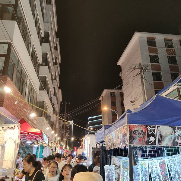 - 建议去莫家街对面的这个广场后面的一个夜市,反而显得很热闹,夜市里人很多,跟各地也是一样,有卖衣...