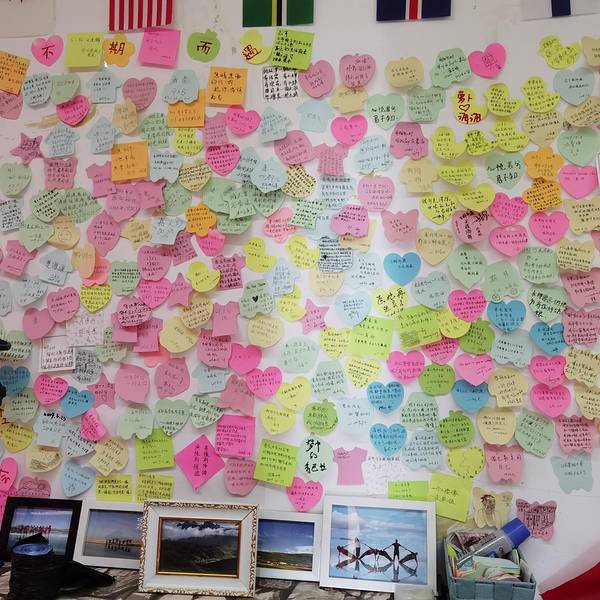 当地人也很亲切热情,进入小区之后遇到一个小区的住户,知道我们从外地来投宿,主动带我们去青旅所在的大楼坐电梯,去到青旅之后,老板还没回来,只有一个清洁阿姨正在清洁,也很热心的为我们讲解有关出行的种种,热情的招呼我们入住。令我完全打消了对西宁这个城市由于陌生而产生的的顾虑。不期而遇青年旅馆里面的心愿墙,满载了全国各地游客的心愿。莫家街的商铺大多都是卖特产的:如手指头般大的红枸杞,老板娘推介壮腰补肾的黑枸杞,味道可口的牦牛肉干,酥油奶茶冲饮,当地特有的青稞酒,羊肚菌,新疆大葡萄干......批发零售都可以,至于价钱就看大家的侃价能力了,这里的店都可以帮发快递,有的店还可以包邮。我便打包了很多当地的特产,连同旅行包里一些用不上的行李物品一同寄回了家,让往后的旅途可以轻装上阵。