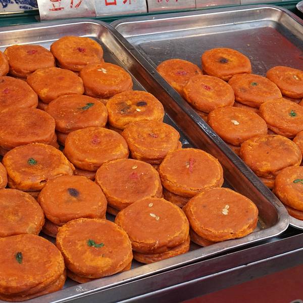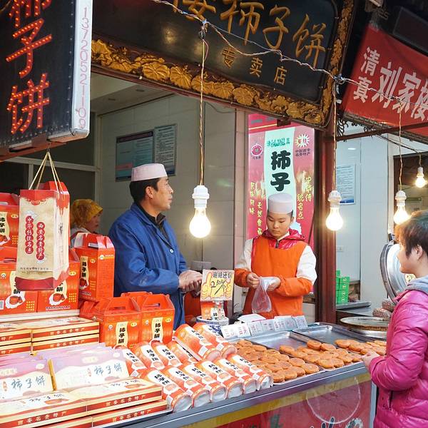 刘家楼柿子饼店位于回民街西羊市街头十字路口处,与刘家烧鸡、东南亚甄糕王、贾三灌汤包子馆等相邻,是回民街上比较知名的一家美食店。由于地处回民街中段,所以交通说不上便利,个人推荐乘坐地铁2号线到【钟楼站】下车,然后从D口出来,顺着钟鼓楼广场走进回民街,顺着街道逛过来。刘家楼柿子饼店面积不大,但是给人的感觉很专业,店铺牌匾上写着专卖店,店内员工穿着统一的工作服,看上去还是非常正式的。店内装修很随意,当然这也是回民街美食店的通病,都是不重装修的,但是卫生做得还不错,虽然不能进去,但在铺子外往里面看了一眼,给人的感觉就是打扫得很干净,很整洁,大家吃食品也想卫生点才有保障啊。柿子饼有好几种口味,自己可以选择,价格是五元一个,不过都是油炸食品,吃太多也不好;店里有包装好的饼,一会在五十元左右,包装得很精致,可以买回去送亲戚朋友。值得一提的是,旁边店的绿豆糕也很美味哟