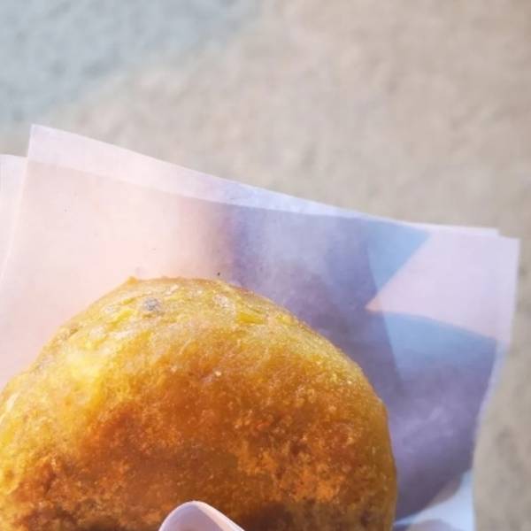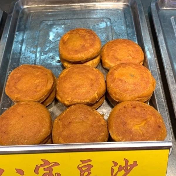 吃完饭正溜达呢,无意中看见店里的店员小姐姐在翻动这个柿子饼,金黄的色泽特别诱人,柿子饼三块钱一个,价钱适中,就和朋友买了两个尝了一下,味道还可以,香软可口就是有点烫嘴,他们家除了石子饼,还有元宵,但是吃太饱就没有去尝