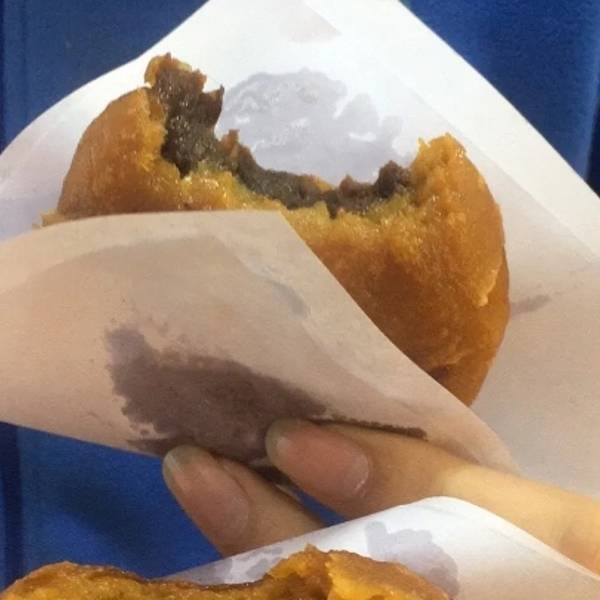 毕竟又甜又香的才好吃,一咬糖浆流出,黑芝麻爆浆啊,滚烫的黏黏的,柿饼软糯,一个也不小,就是油炸...