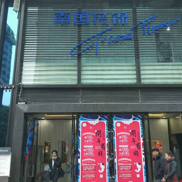 在南国花锦负一楼和七楼都有很多喜欢的好吃的~负一楼的饮料,面包店,满记甜品,咖喱,鱼旨寿司~七楼的丝恋红酸汤丝娃娃和铁板烧,重庆串串烧~买衣服的话,学生一族买得起的热风到淑女系列insidle,各种运动品牌齐全,而且一楼经常有些大牌特卖活动,挺划算的~在很多节日也有一些与顾客的互动活动,亲子活动,公益活动。